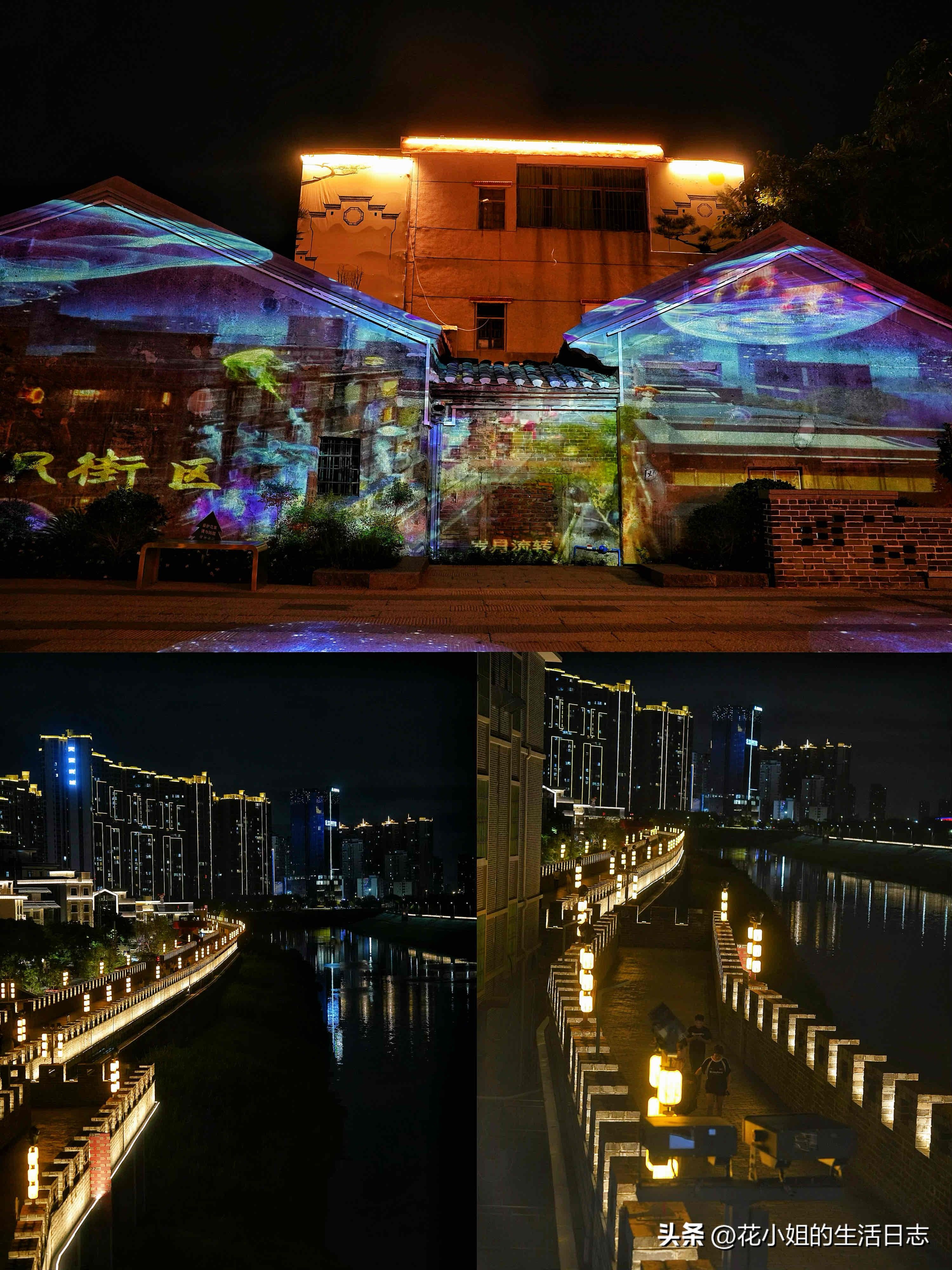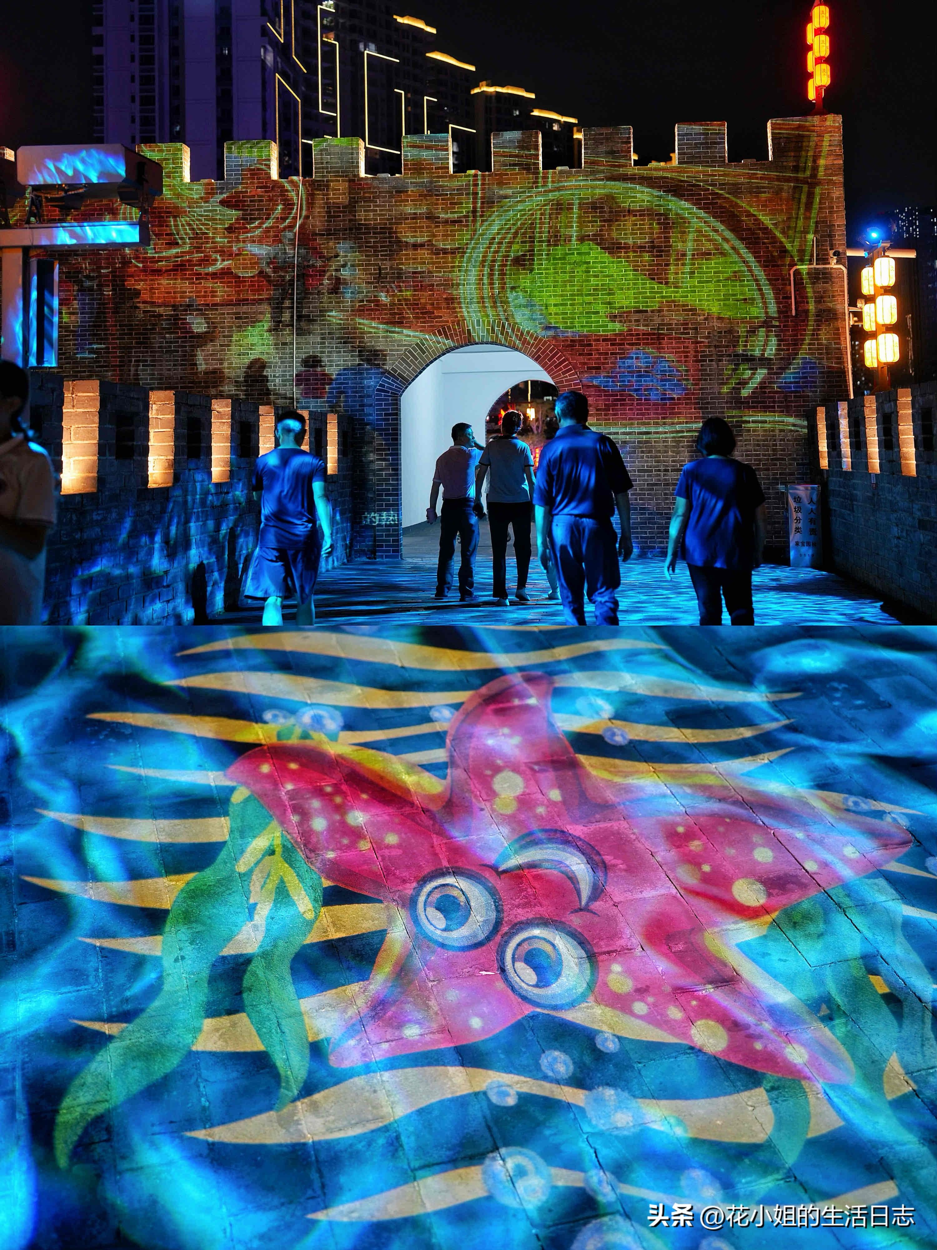 漫步青石板路,夜游淡水老城。城墙上演光影秀,惠阳的夜,迷人而绚烂。