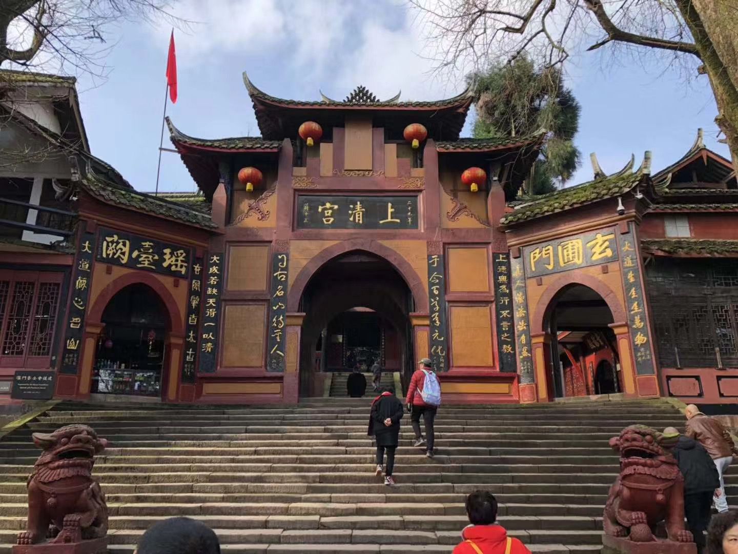 拾级而上,上清宫的朱红宫门次第洞开。三重飞檐托起的"瑶臺阙"匾额,将游人视线引向云深处的老君阁。这座七层鎏金楼阁宛如立体《道德经》,每重檐角悬铃对应二十八星宿,登顶可见都江堰银练与川西平原在脚下铺展《山河社稷图》。特别推荐寅时观云海,当晨光刺破"碧水回澜"碑刻的雾霭,炼丹炉造型的香炉正升起紫气东来。