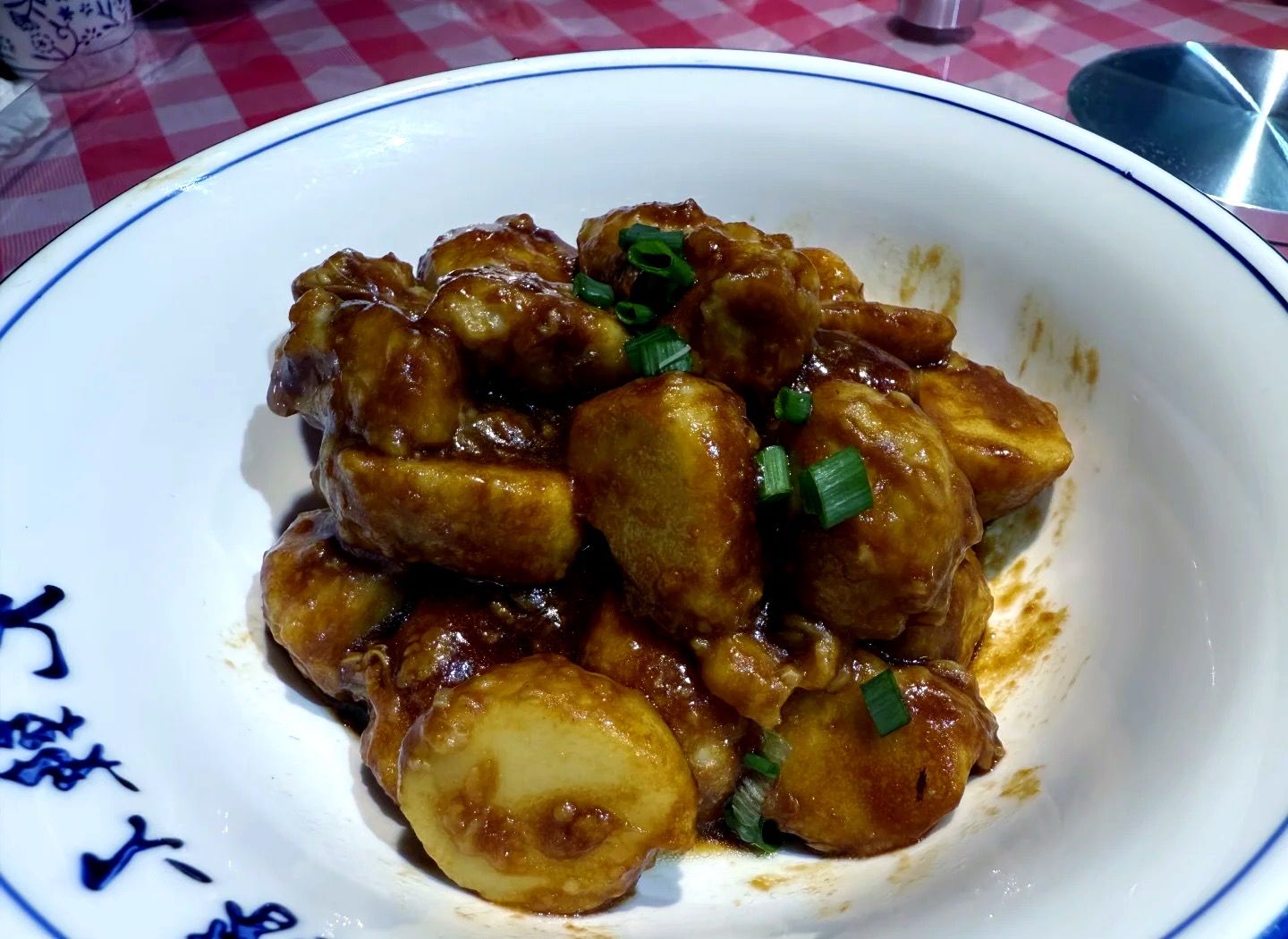 猪心、猪肺与枸杞、萝卜炖煮,润肺暖胃,横港镇特色。