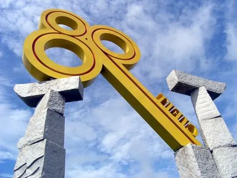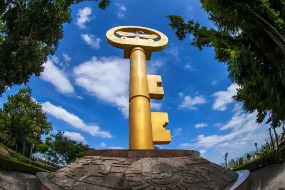 7.厦门大桥金钥匙雕塑。厦门大桥也有一把“金钥匙”,不同于“98金钥匙”,据说这把“钥匙”的寓意是“打开厦门的金钥匙”,从厦门大桥进岛就能看到。钥匙当中的白鹭衔着一缕稻穗,好像在说是这白鹭衔来播种在厦门的稻穗,才有了厦门人民的富足生活。