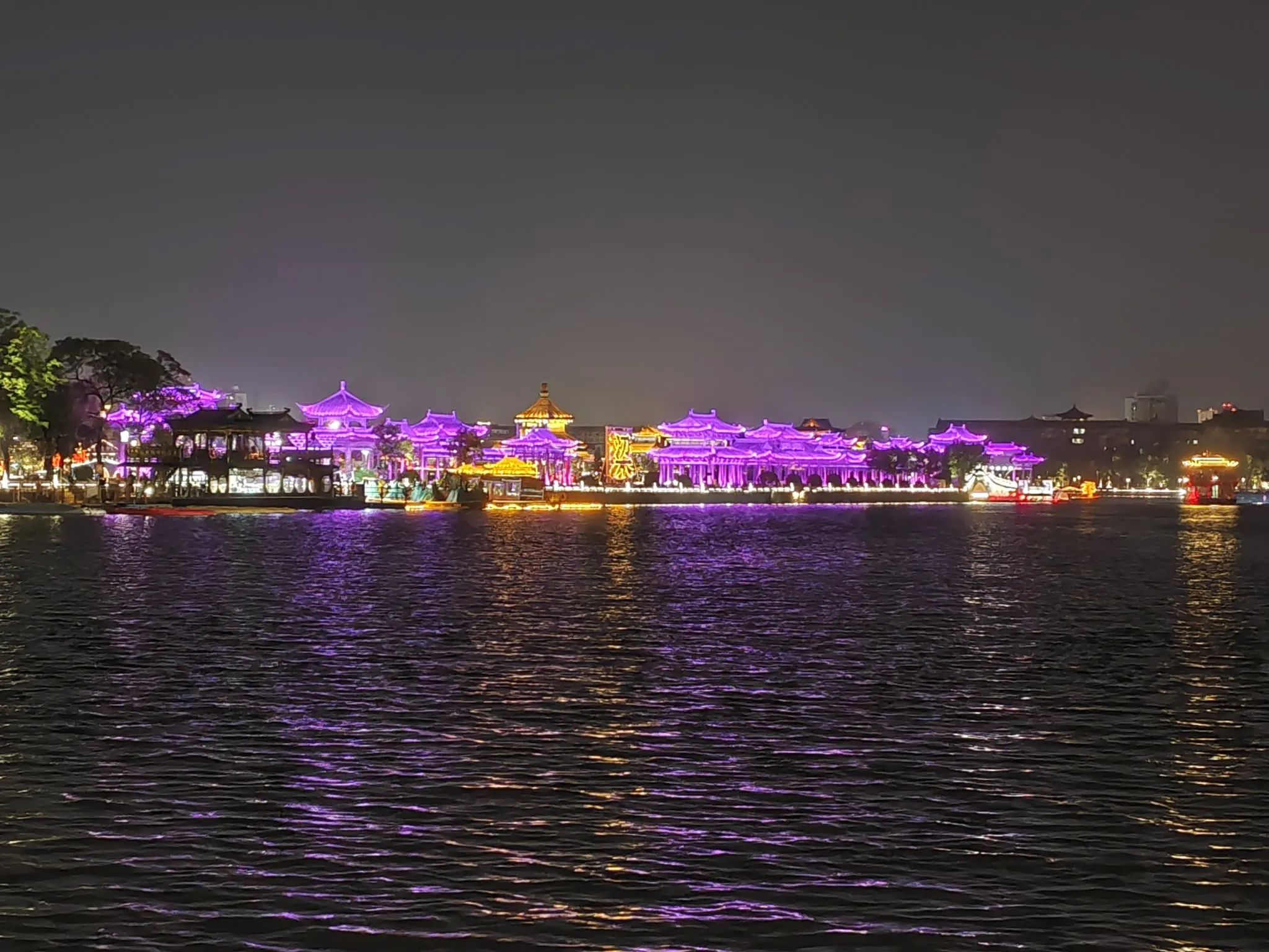 龙亭水上公园最大的特色就是其广阔的水域。夜游龙亭公园,可以选择乘坐游船,在湖面上泛舟。清风徐来,水波不兴,坐在船上,可以欣赏到湖两岸的灯光夜景,感受水韵悠长的宁静与美好。湖面上偶尔有几只水鸟掠过,更增添了几分灵动与生机。