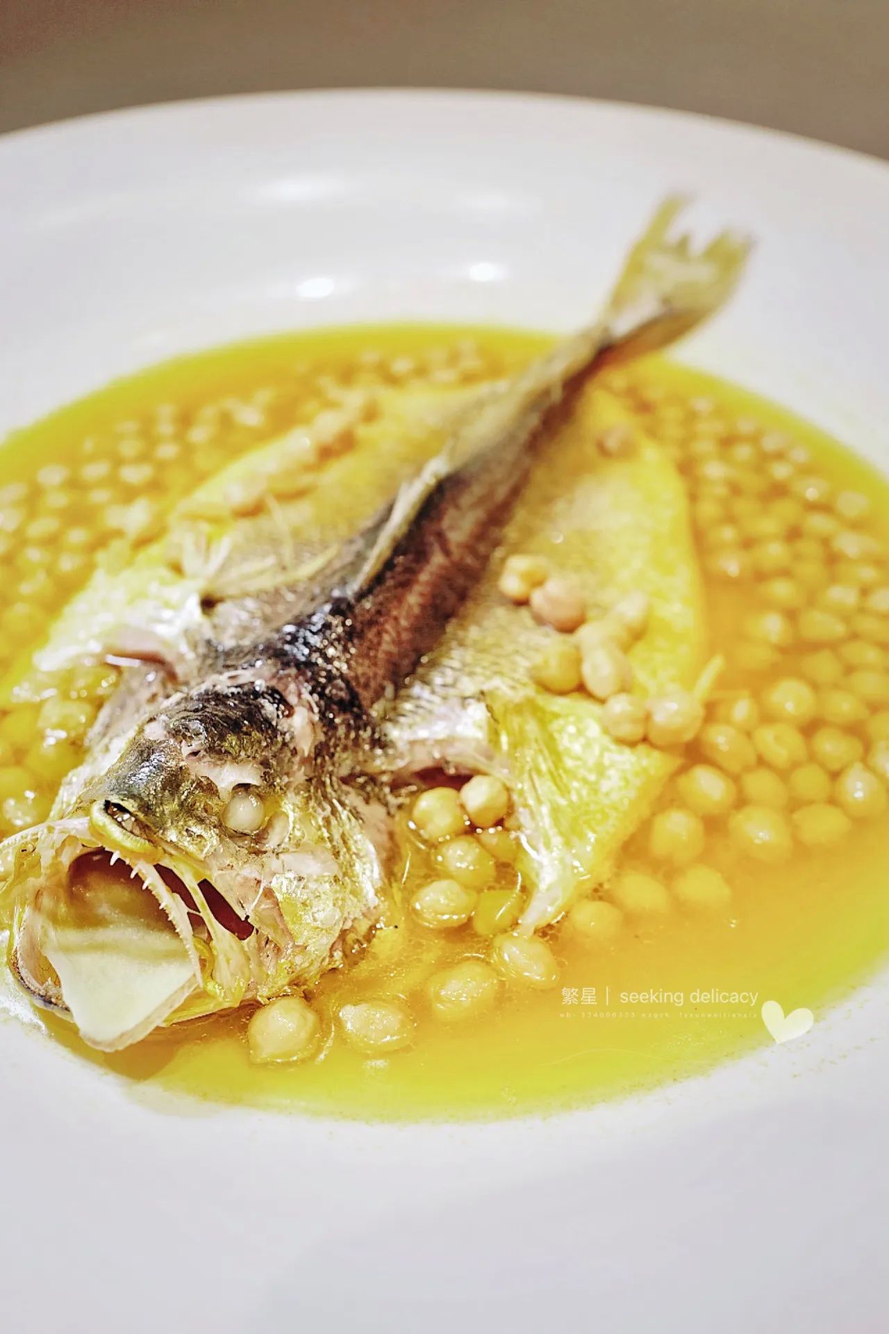 海钓来的大黄鱼,还是来自舟山的东极岛,金汤让这条鱼越发显得黄爆,鱼肉更是细腻滑嫩中带着肥美,放进以色列的鹰嘴豆,吸饱了汤汁的豆子,粉粉糯糯是藏满了鱼的鲜,实在是越吃越想吃。