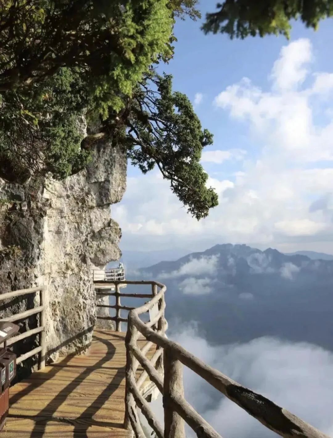 5. 龙头山堪称云海仙境,悬崖栈道仿佛悬于空中,日出日落时分,霞光漫天,随手一拍都是大片。
