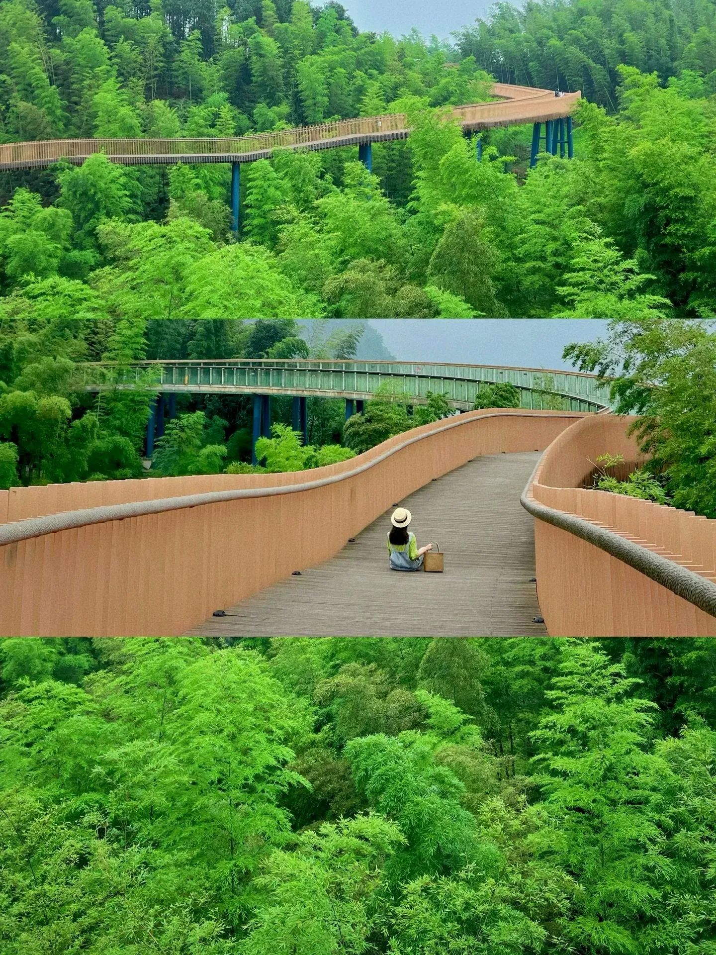 随着栈道行走,高耸的竹林在脚下穿梭,仿佛在竹尖上跳舞,趣味十足!