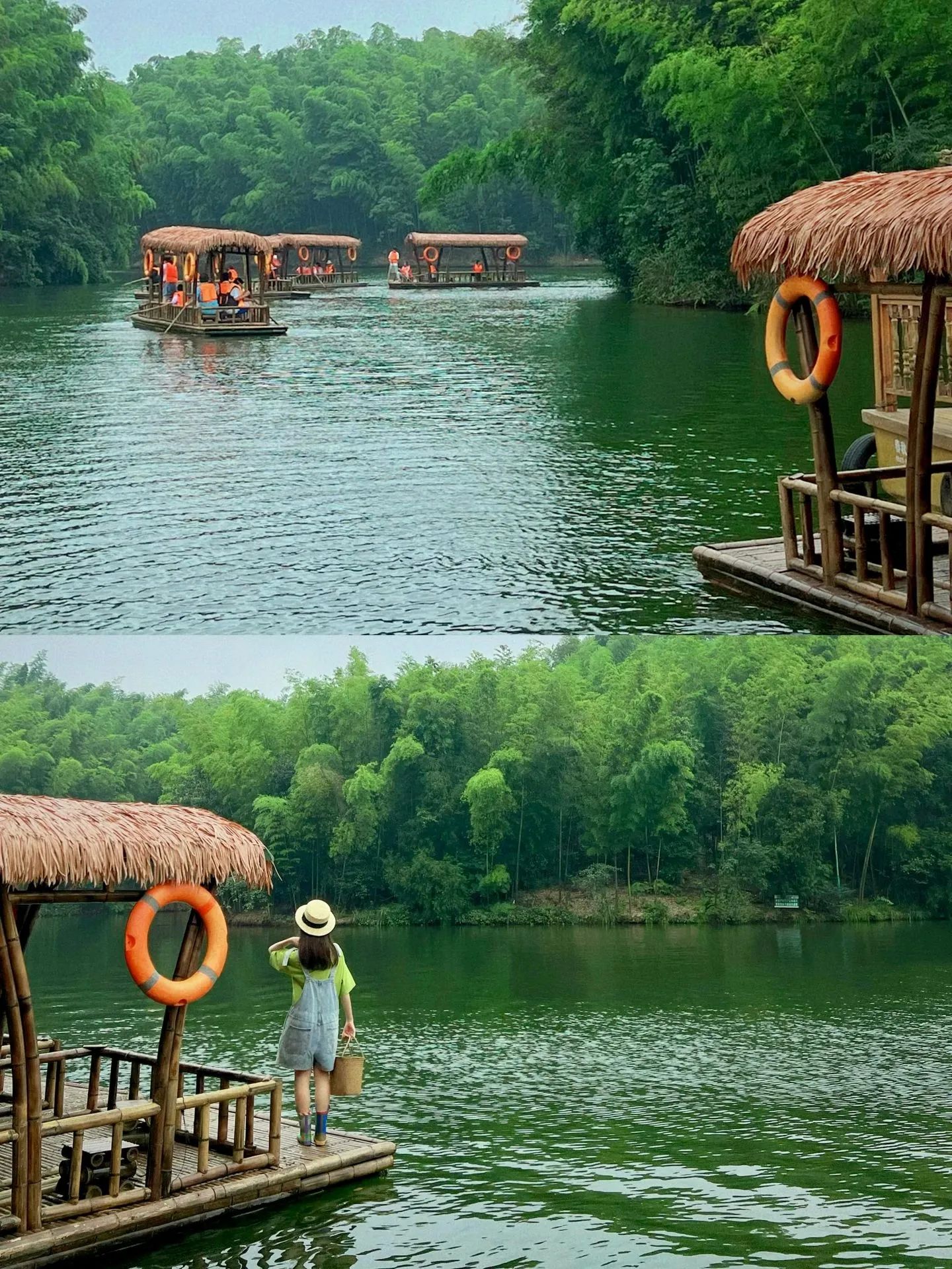 约60亩的湖面,恍若茫茫竹海中的一个“海子”,碧绿的湖水波光粼粼,坐着小船穿梭在山水中,似画似梦,太唯美!