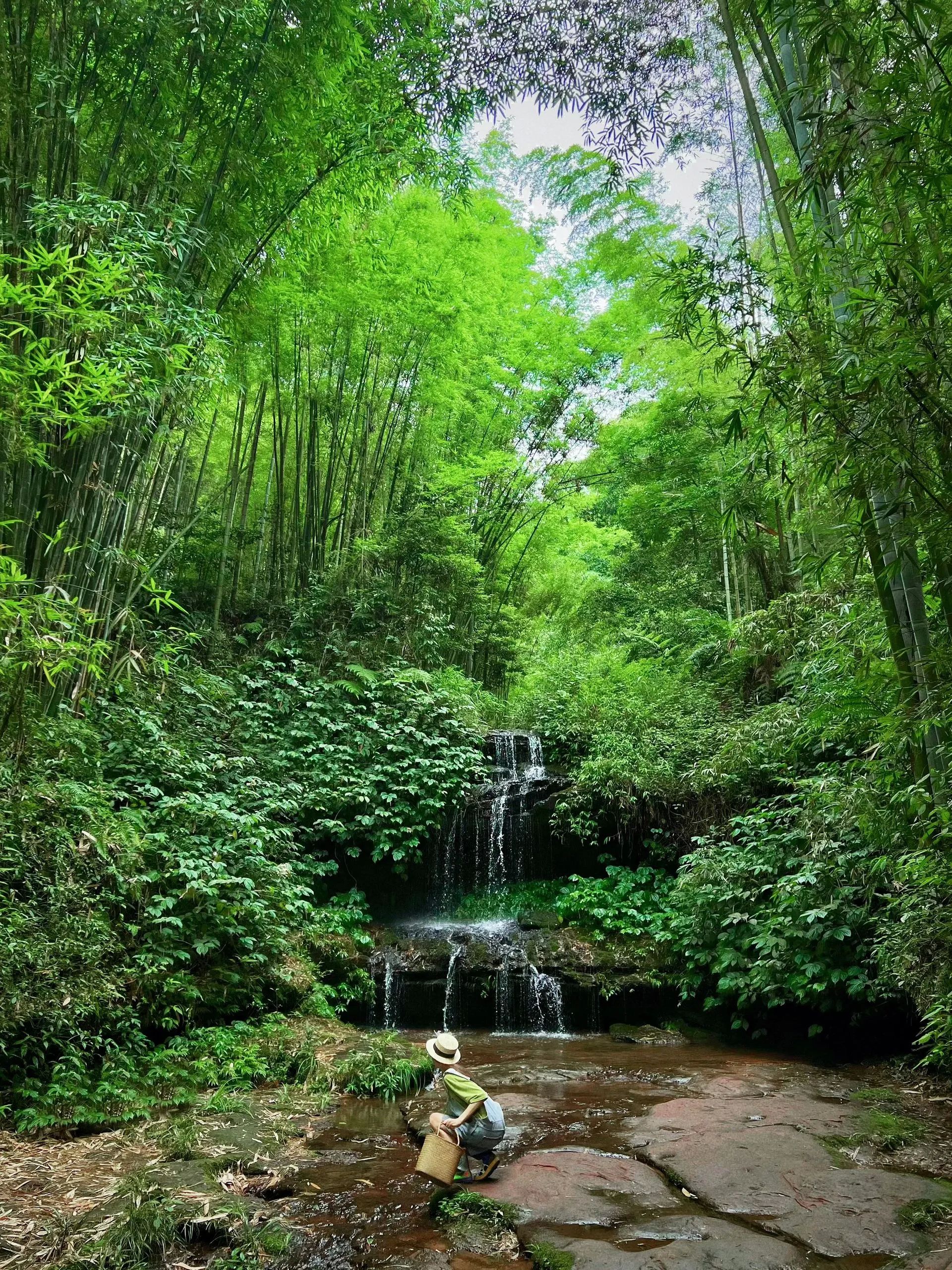 没错,就是蜀南竹海,这个熟悉又陌生的地方,没想到这里这么的清幽且舒服!一路走来人完全不多,我们似乎承包了整片竹林,山间寂静无声,只听见鸟鸣和风吹竹叶沙沙的声,还有沿途溪流潺潺声… 这种逃离城市,亲近大自然,畅快的呼吸新鲜空气的时光,简直不要太美好啊!!