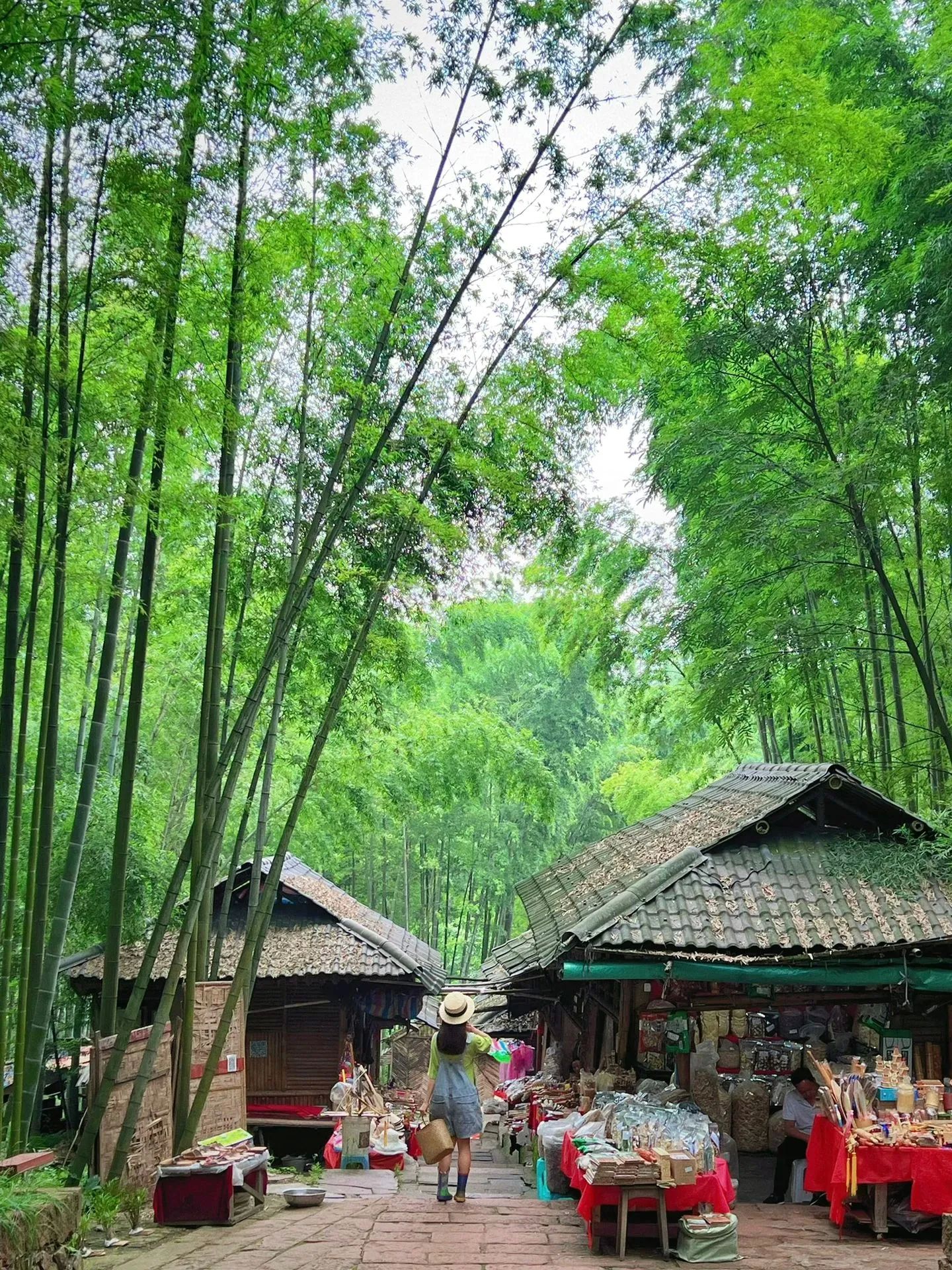 这里的竹子茂盛生长,形成了一条翡翠般的走廊,风中透着凉意,舒适极了!旁边的竹林小路还有古街,古色古香,好有味道啊!