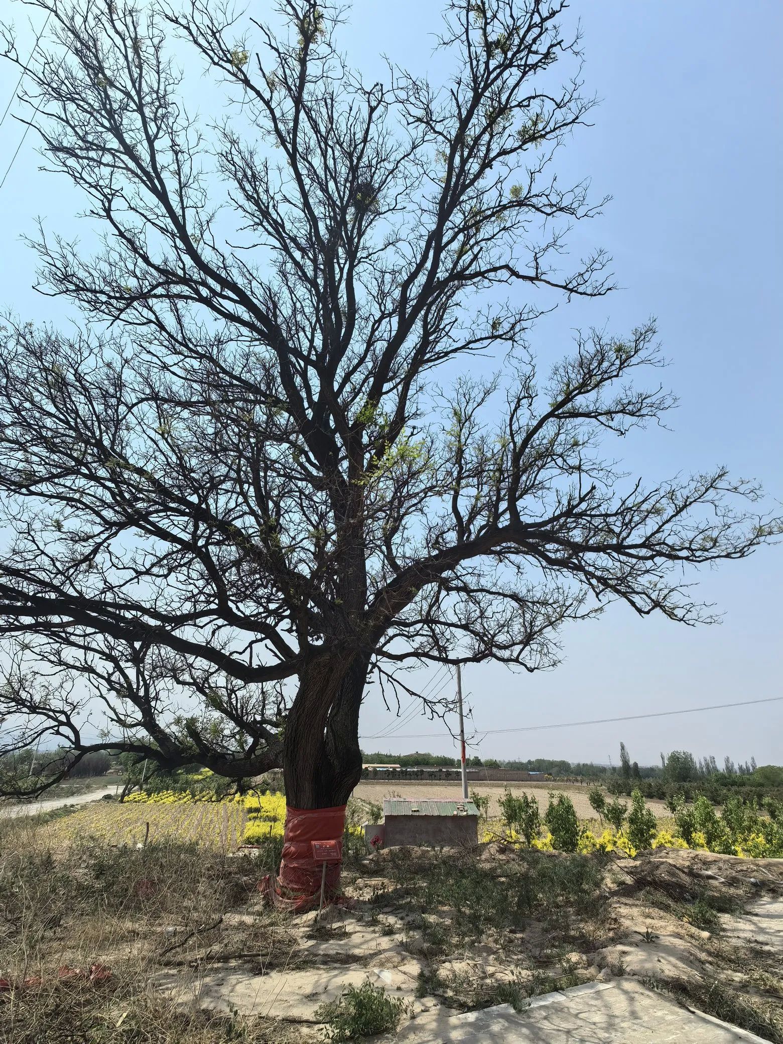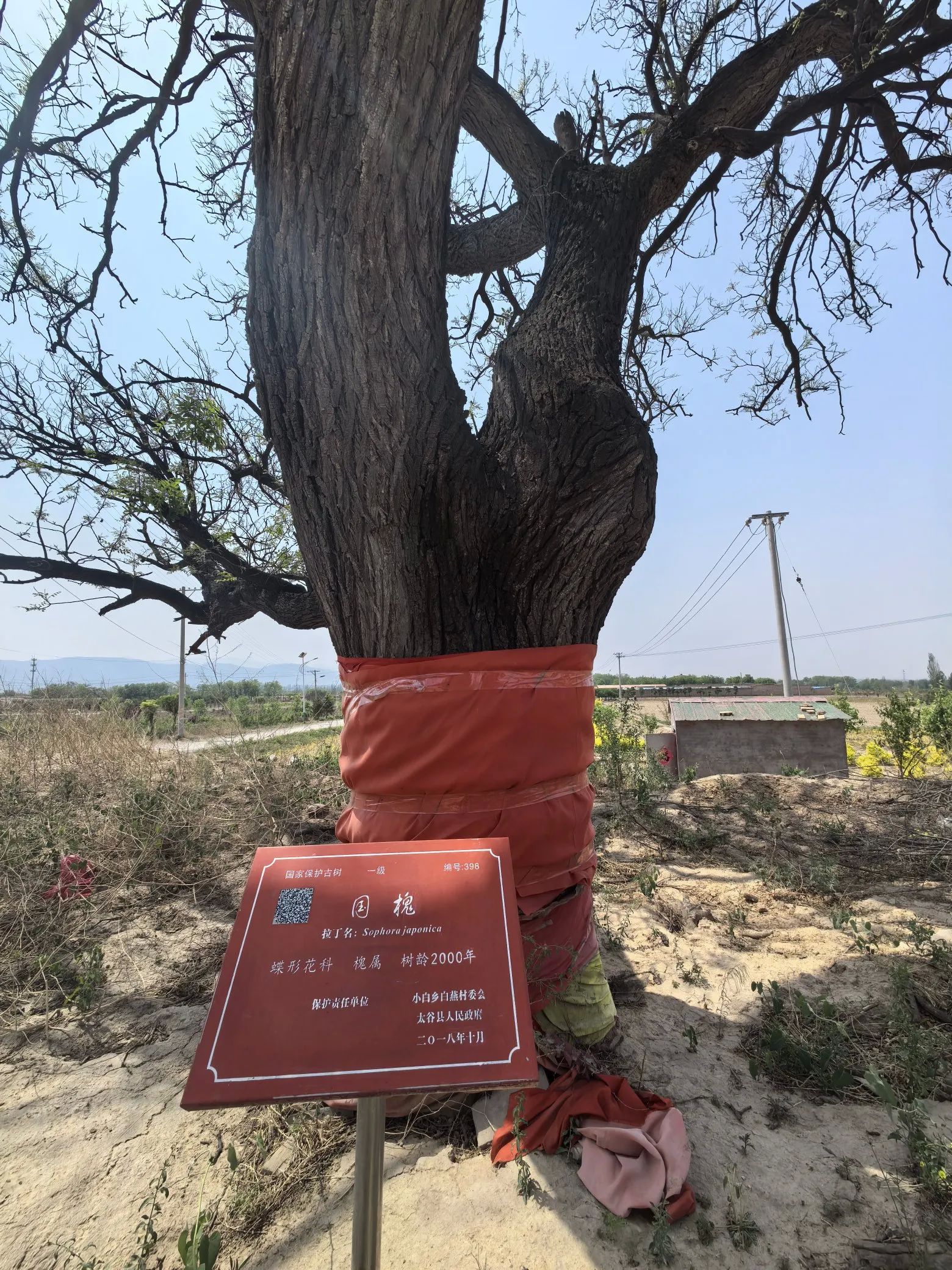 返回时,到距离“白燕遗址”20米左右的宝峰寺。宝峰寺正在修缮没能进去,寺庙外两侧各有一棵裹着红布的槐树,树龄分别为300年和2000年。