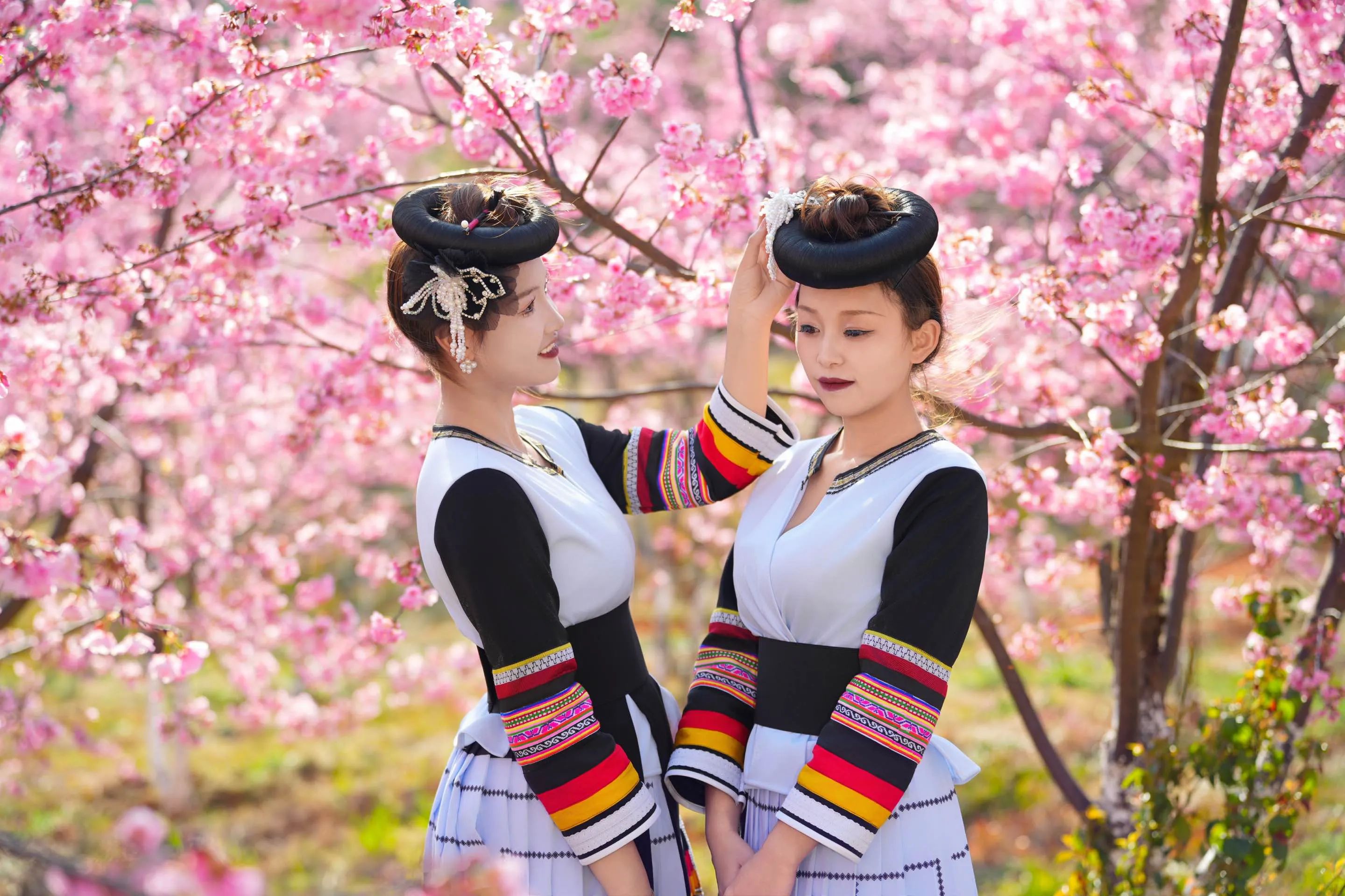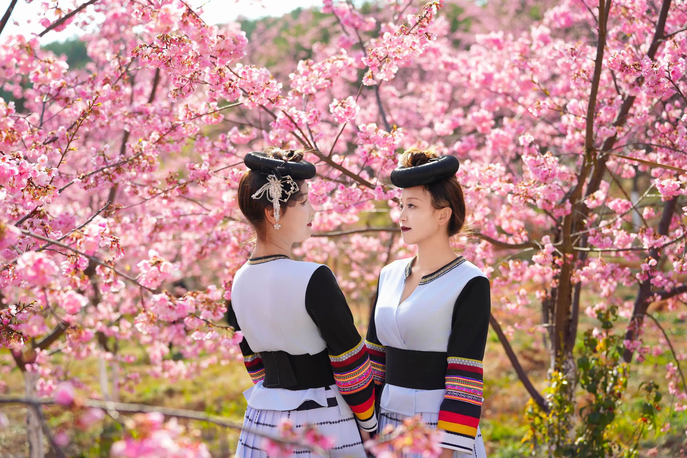 马龙区的樱花以“热烈、喜庆、奔放”著称,尤以沈家山樱花谷最为壮观。这里栽种的4000余株樱花多为春樱花,花团硕大饱满,色彩从粉白到深红层层晕染,与青翠的山谷相映成趣。从空中俯瞰,樱花如彤云笼罩大地,游客穿行其间,仿佛置身“花溪仙境”。樱花花期从三月中旬延续至四月,最佳观赏期集中在3月中旬,而2025年的樱花旅游消费周(3月7日—21日)更是将赏花与文旅活动推向高潮。
