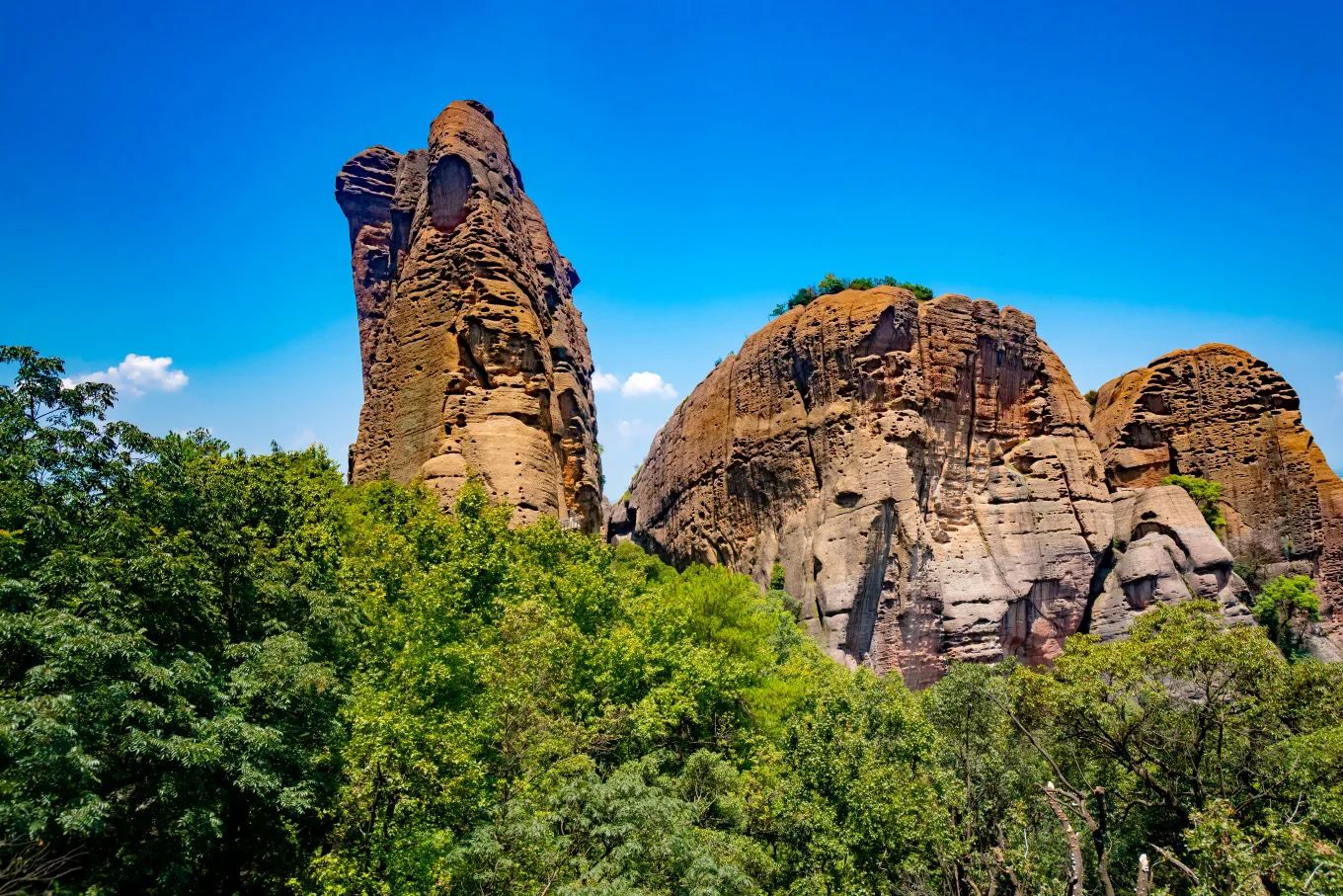 • 弋阳龟峰:是世界地质公园和世界自然遗产,有“无山不龟,无石不龟”的特色,是典型的丹霞地貌,山林郁郁葱葱,山峰层峦叠嶂,形态各异,一步一景,还可以在山脚下乘坐游船,欣赏龟峰的碧水丹山。