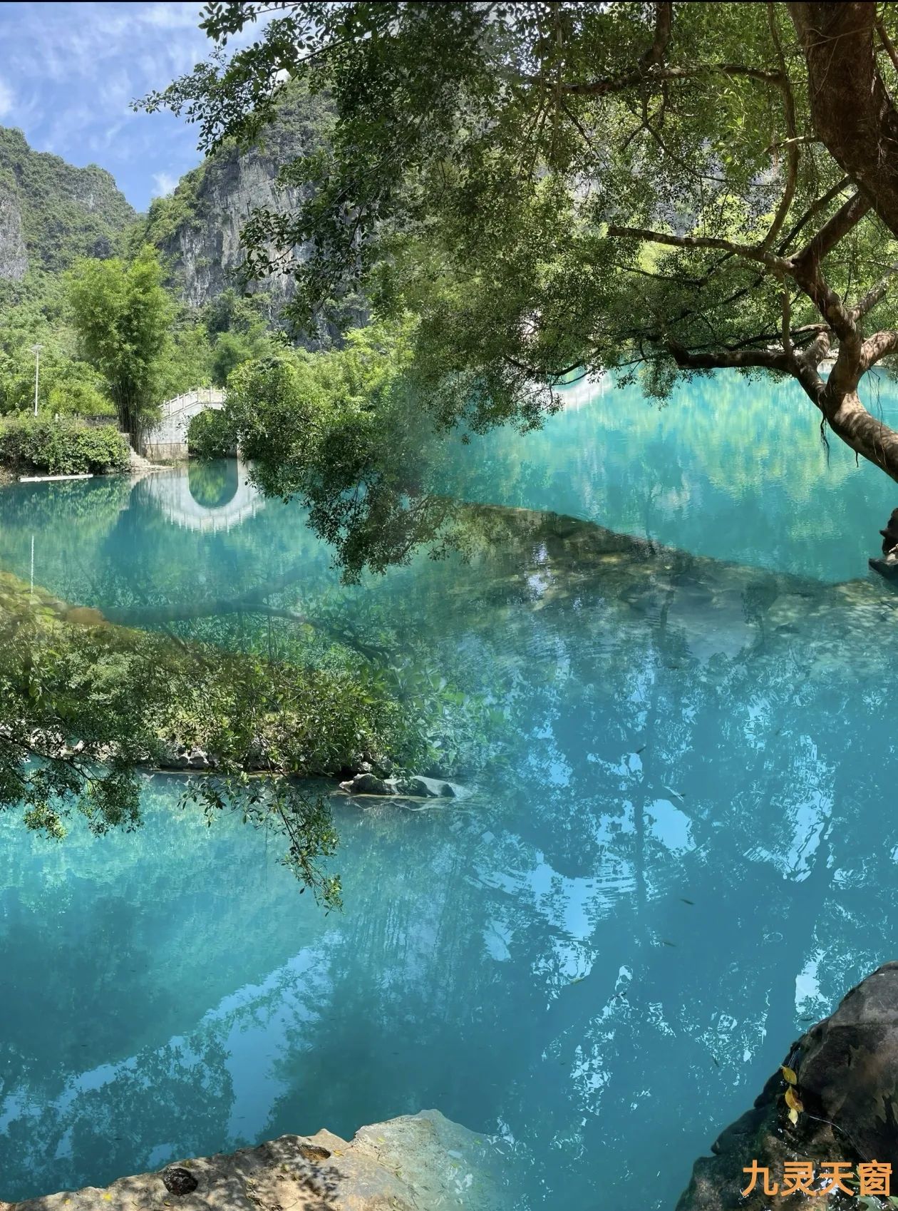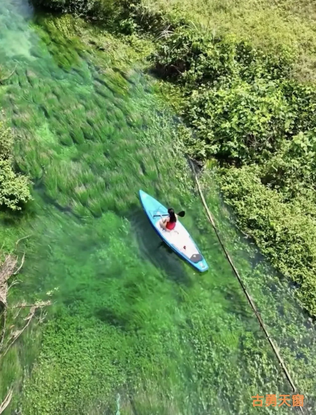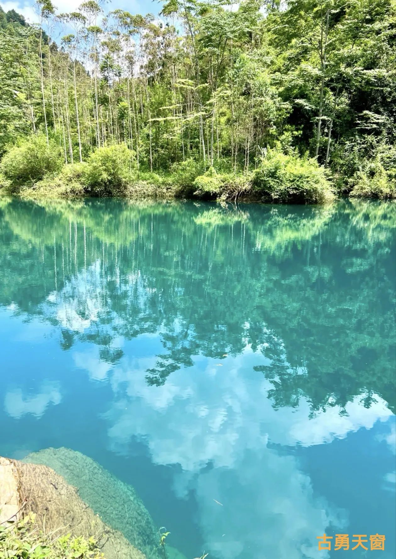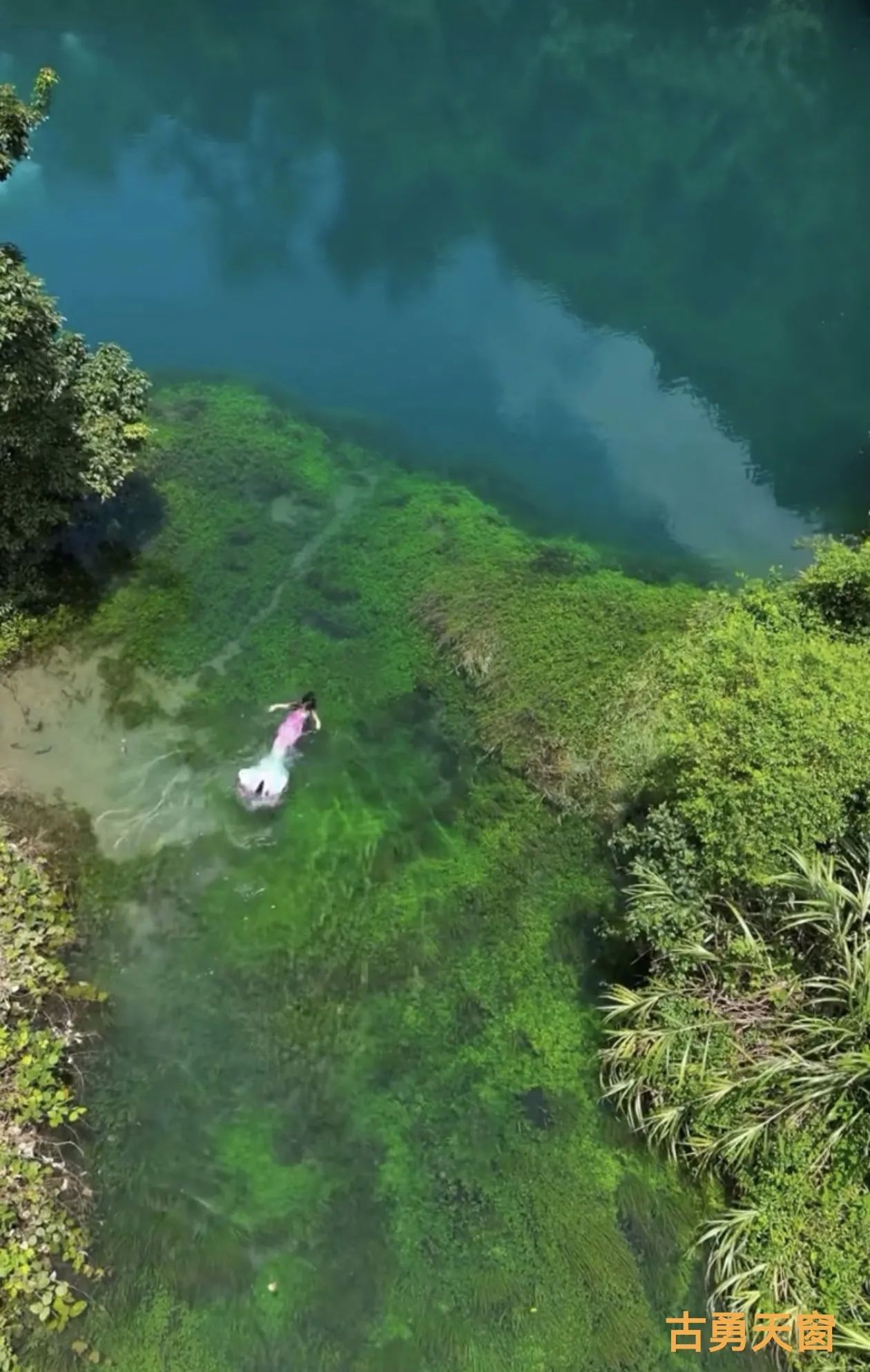 5、古勇天窗,广西小九寨,河水湛蓝,水草特别丰富,浅水区水质清澈,每年只有5~9月水位比较高,有个好处就是人少。