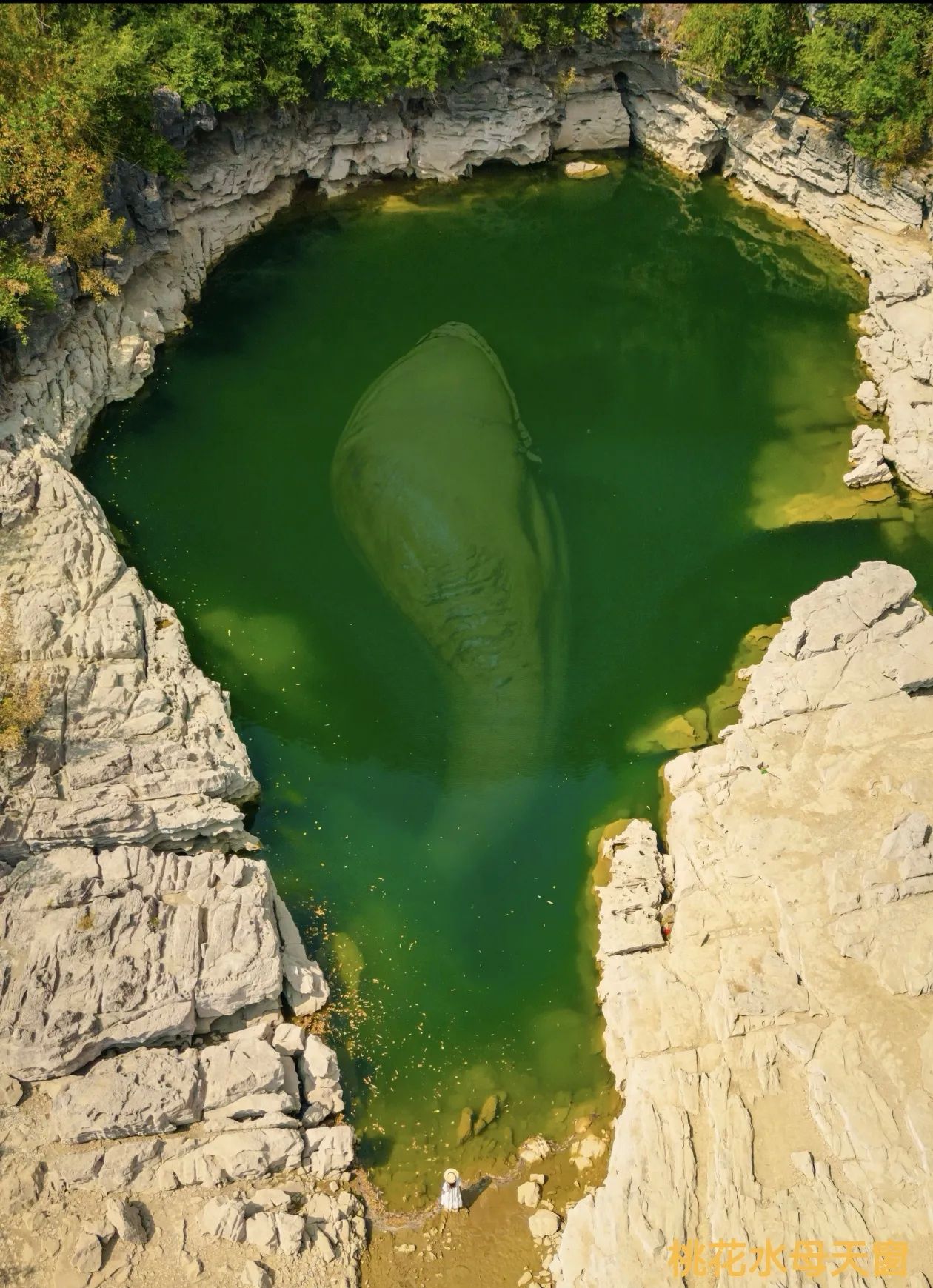 3、桃花水母天窗,因桃花水母而出名。桃花水母为世界濒危物种,有"水中大熊猫"之称。每年丰水季,都会出现数量庞大的桃花水母群体;枯水期水体澄清变成宝蓝色。