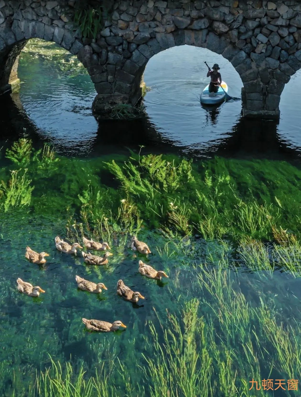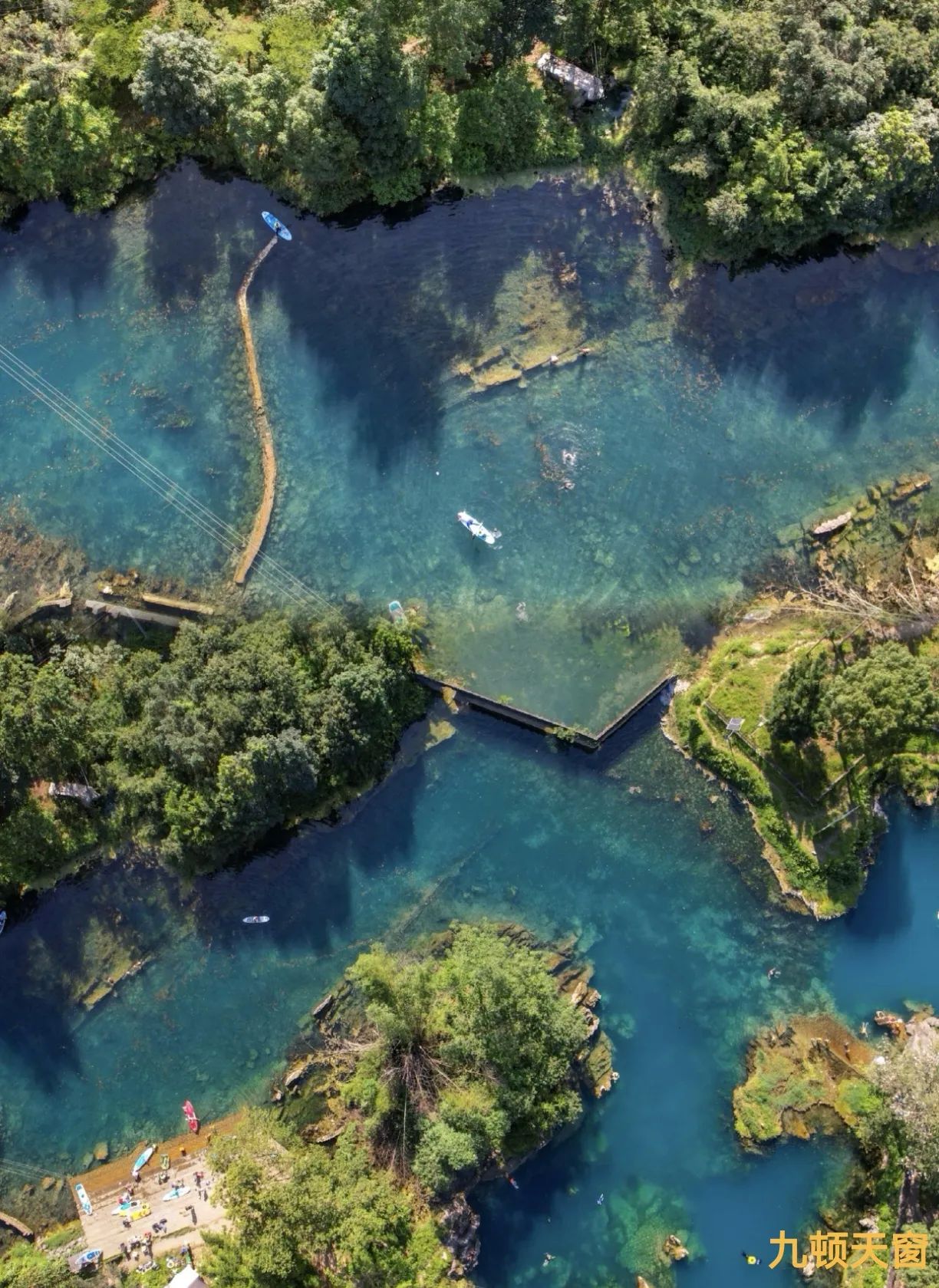 2、九顿天窗,澄江源头,不论枯/丰水全年都有水,水下洞潜深度达212米,被誉为“中国水下的珠穆朗玛”,即便冬季枯水期,美得依然沁人心脾,宛若莫奈油画。
