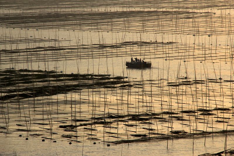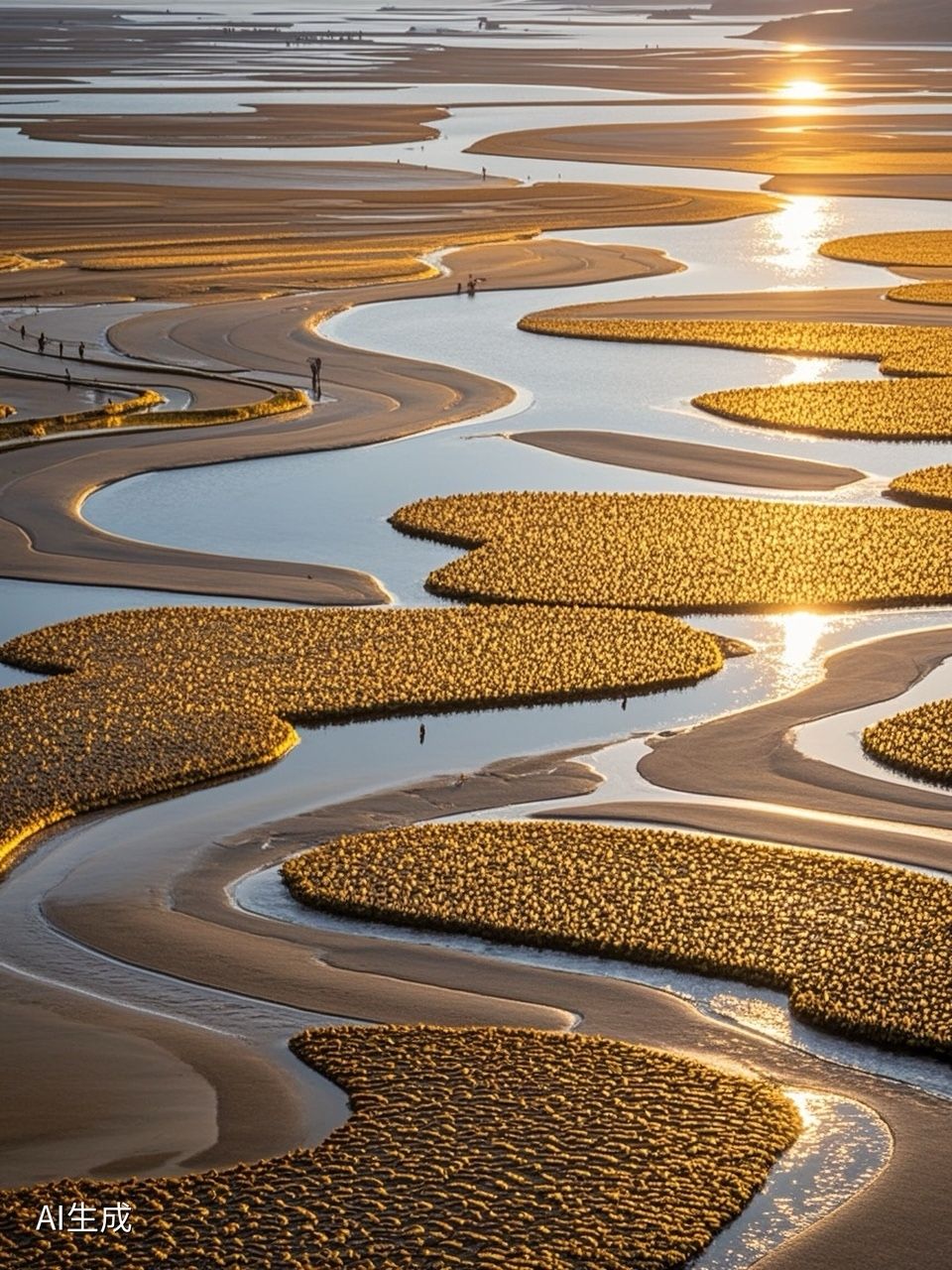 清晨5点前抵达北岐村看日出 滩涂被晨光切割成万块金箔 渔民竹筏穿梭S形水道 快门随手出大片 退潮时可挖蛏子体验渔民日常