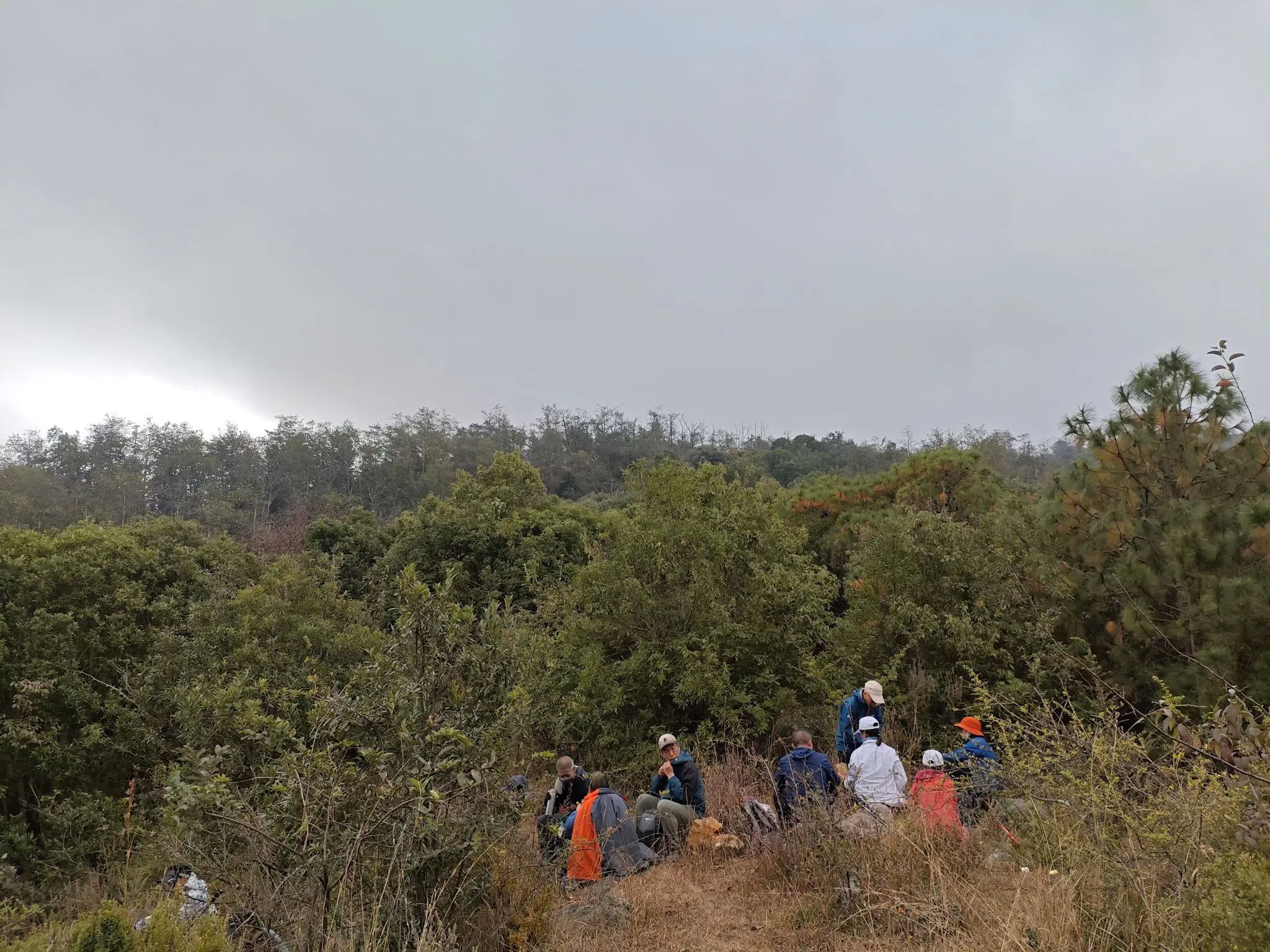 中午大家找一风景优美且平坦地方稍事休息并一起分享午餐,领队风味独特的烧猪脚更是引得大家哄抢不断……