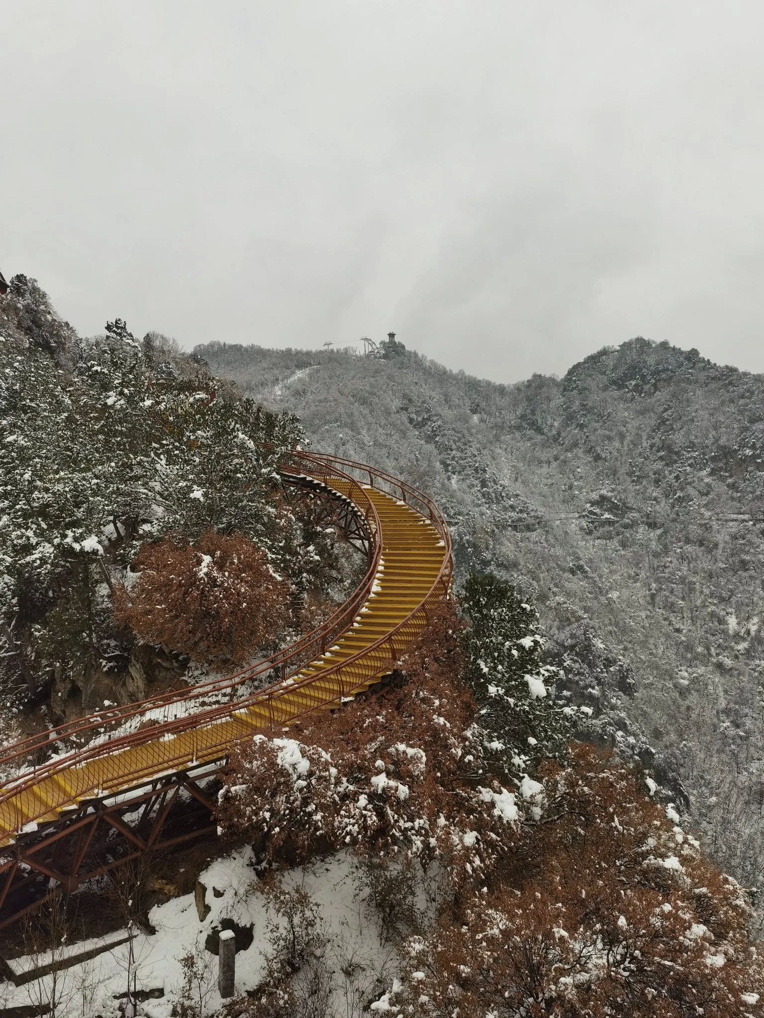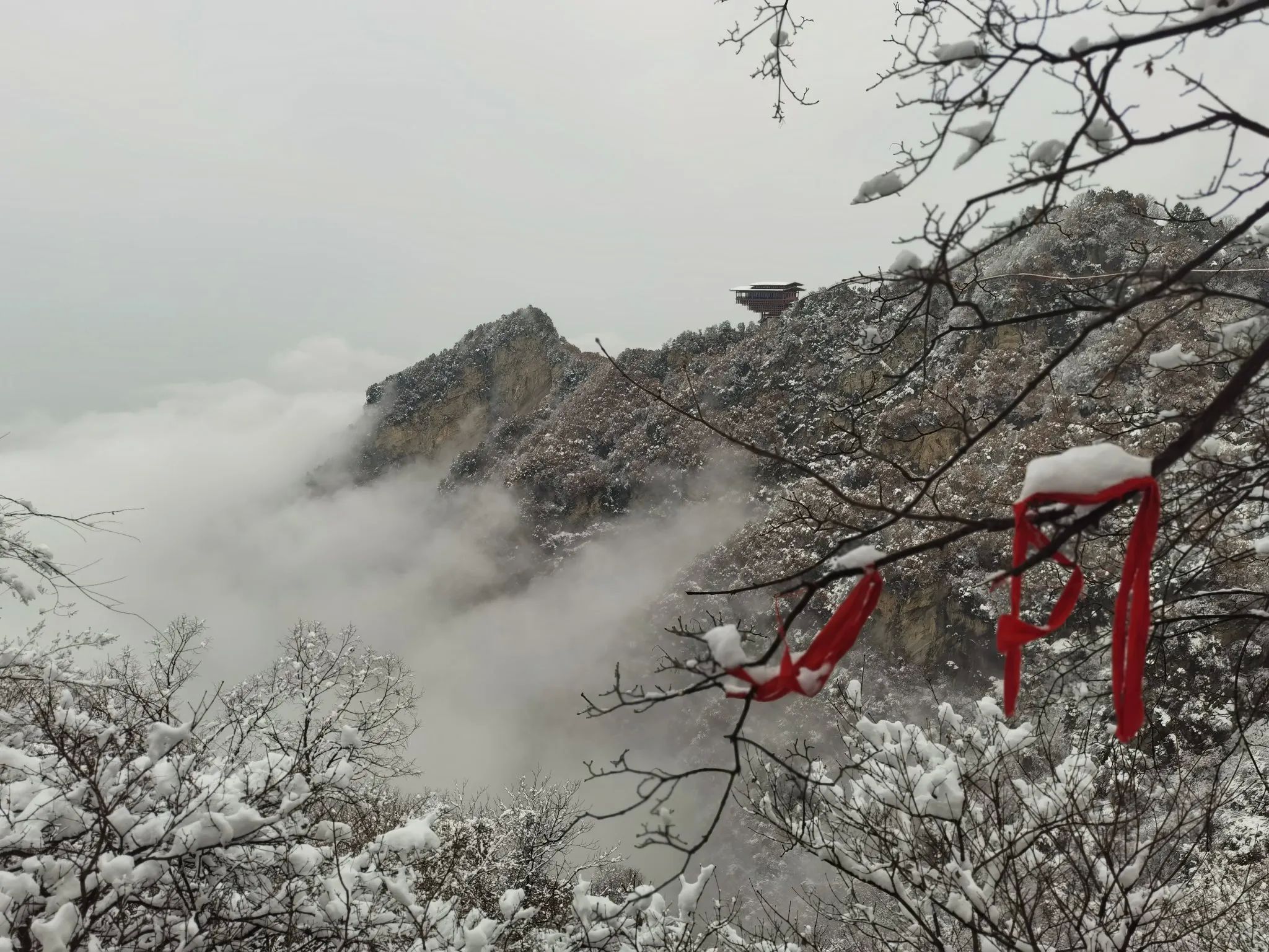 [烟花]潜龙寺景区,看了龙首阁和走了玻璃栈道,还看到了少华云海,简直美的没法形容,初春的山间,雾气弥漫,宛如人间仙境。山上的雪与裸露的树枝共同构画出一幅生动的山水画。游玩这条线路就要选择坐缆车。