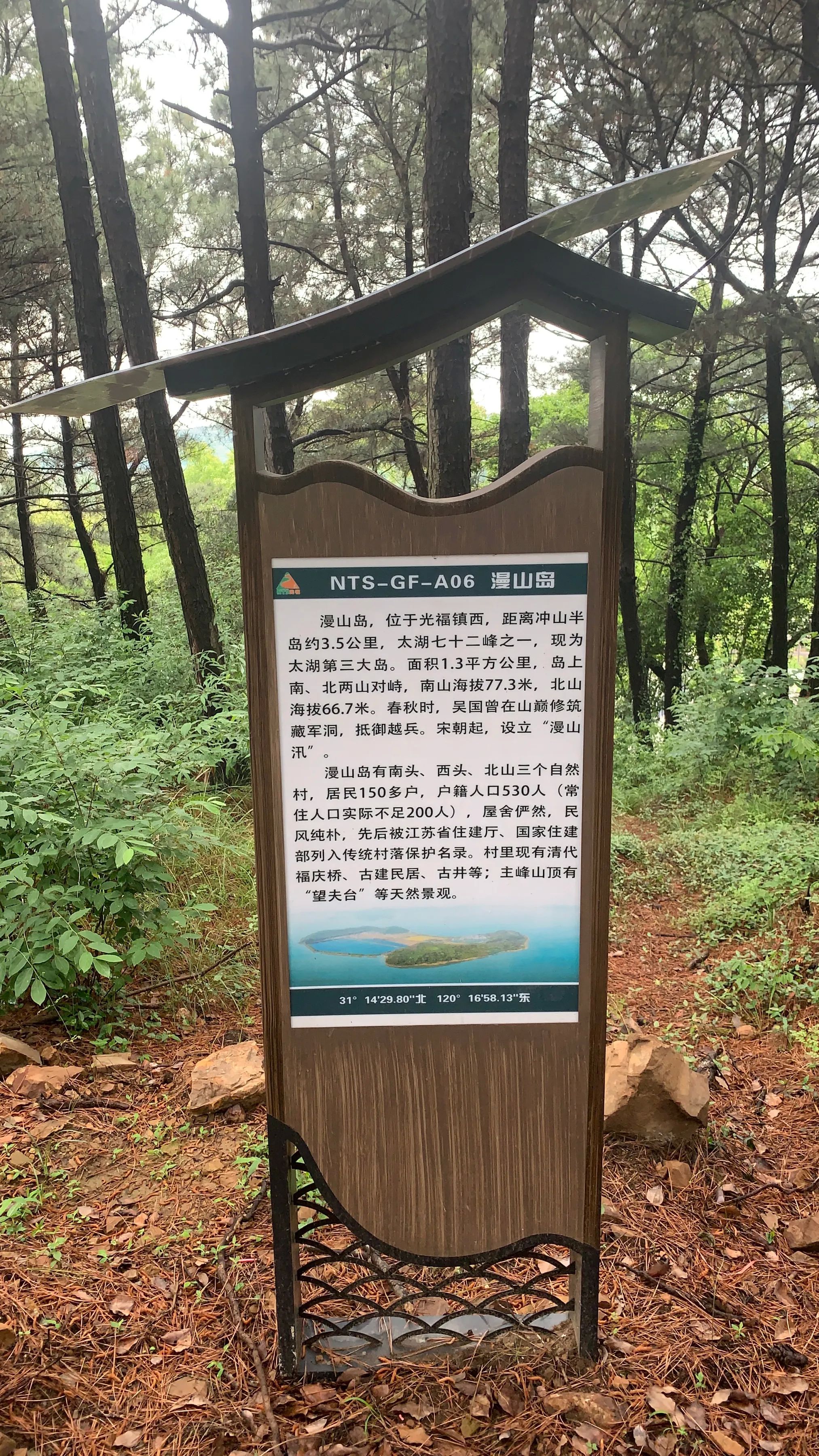 5/5号: 我预约了水韵江苏年卡内包含的漫山岛。(感觉我像是在给水韵年卡做广告似的[捂脸])导航到漫山渡码头,那里停车非常方便,还免费!去漫山岛的轮渡半小时一班,不用等很久,我们赶到时正好10:00差几分,赶上了10:00的船。漫山岛没有人人人现象,听说苏州文旅开发漫山岛还一直处于亏损状态,大家多多去捧场啊!轮渡半小时到达岛上,岛上没有汽车,有南山北山两座山,山中间的平地上,就是村民的农田,有小朋友的,可以带小朋友去岛上进行蔬菜科普啊!农民伯伯种了不少种类的蔬菜。岛上的房子都是一九八几年盖得,现在已经很旧了,有些房子苏州文旅租下来改成了民宿、饭店、咖啡馆等,虽然里面装潢一新,但房子外面还是80年代的老样子。南山上上山的道路还未开发好,但已经有石子路可以登山了,北山上就只有村民踩出来的小路了,也没有任何标识,我们走岔了路,树越来越密,只好退回来了。