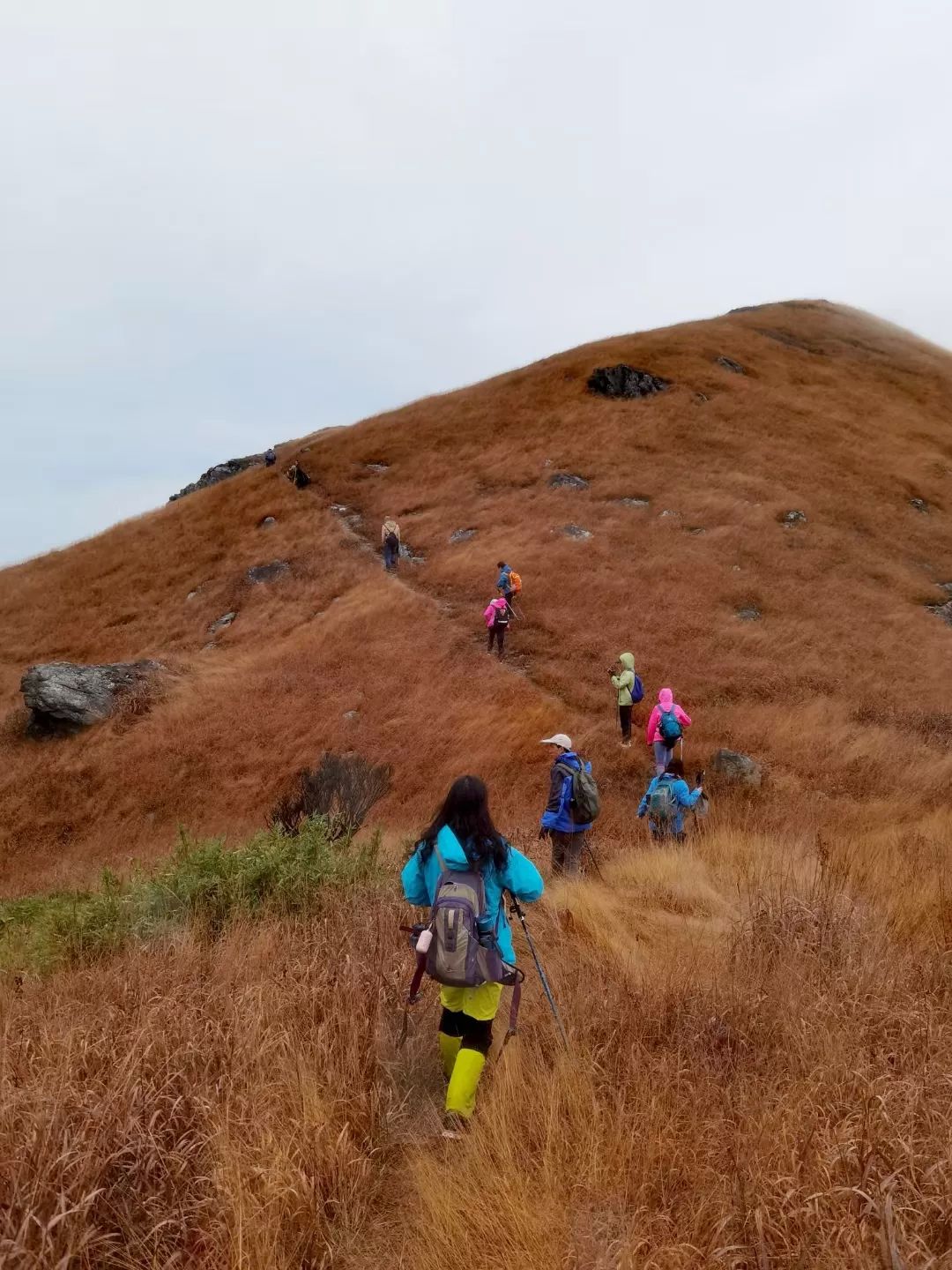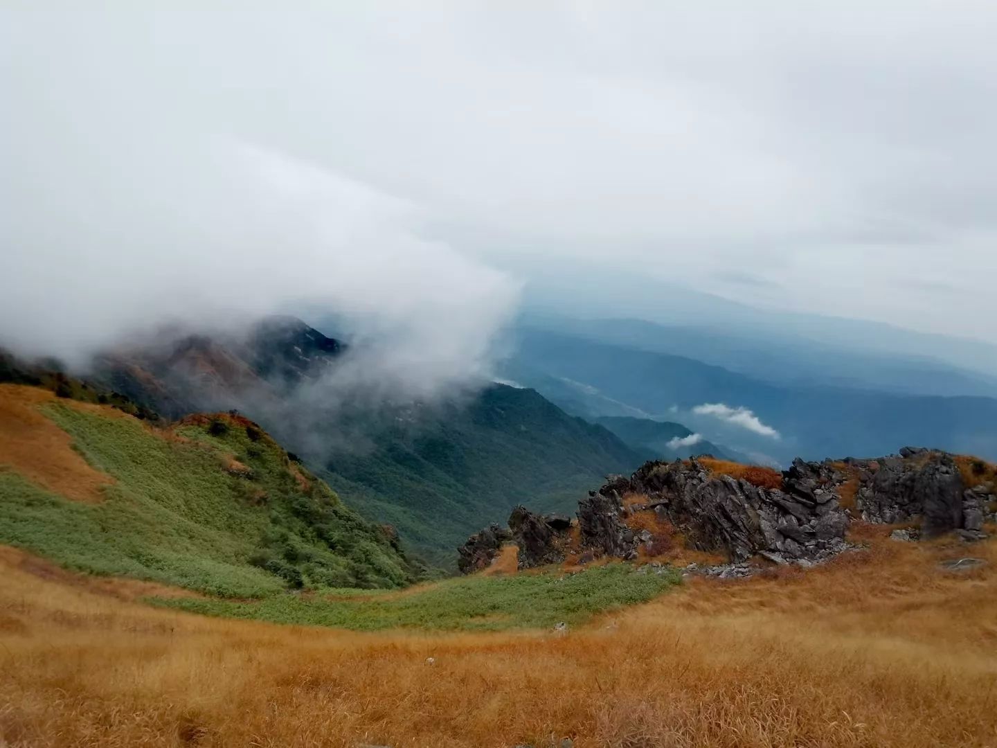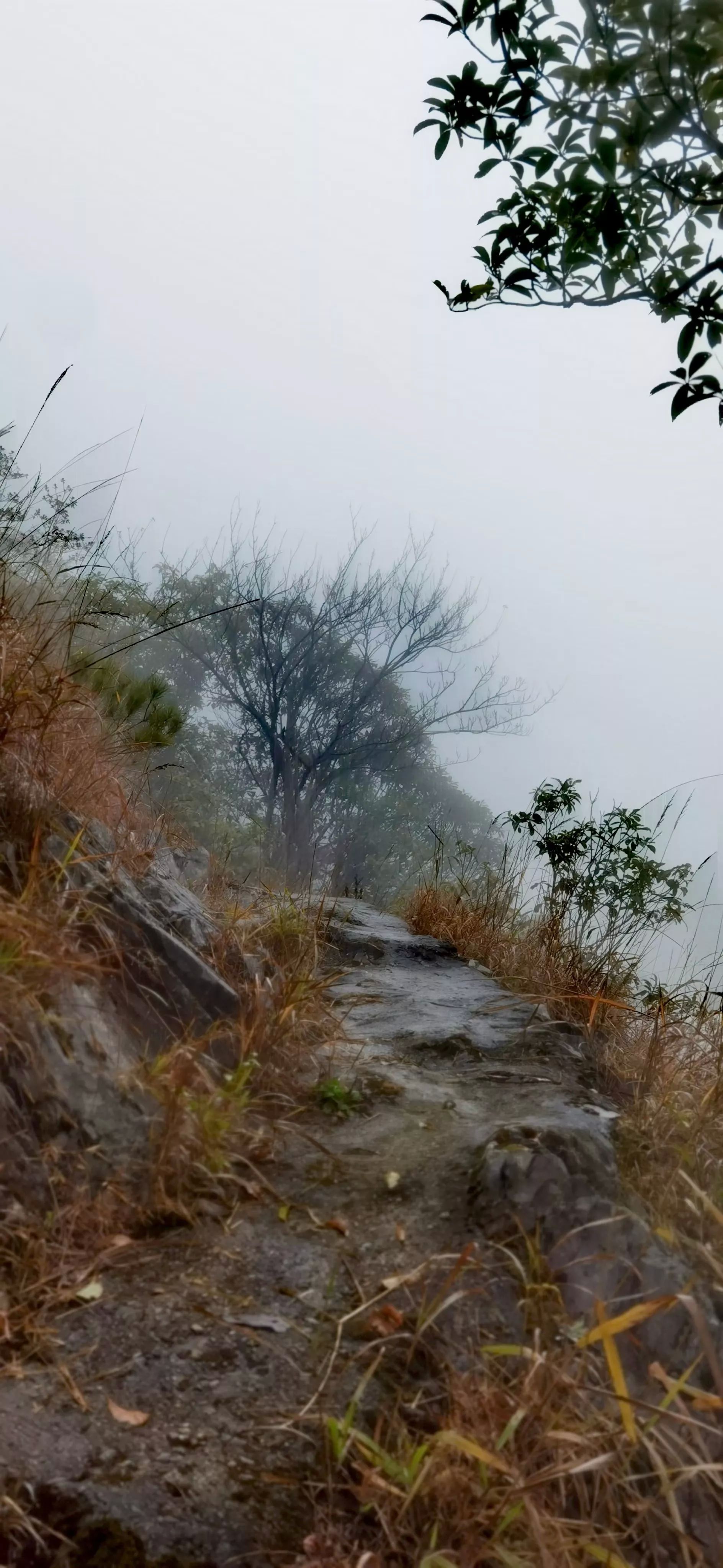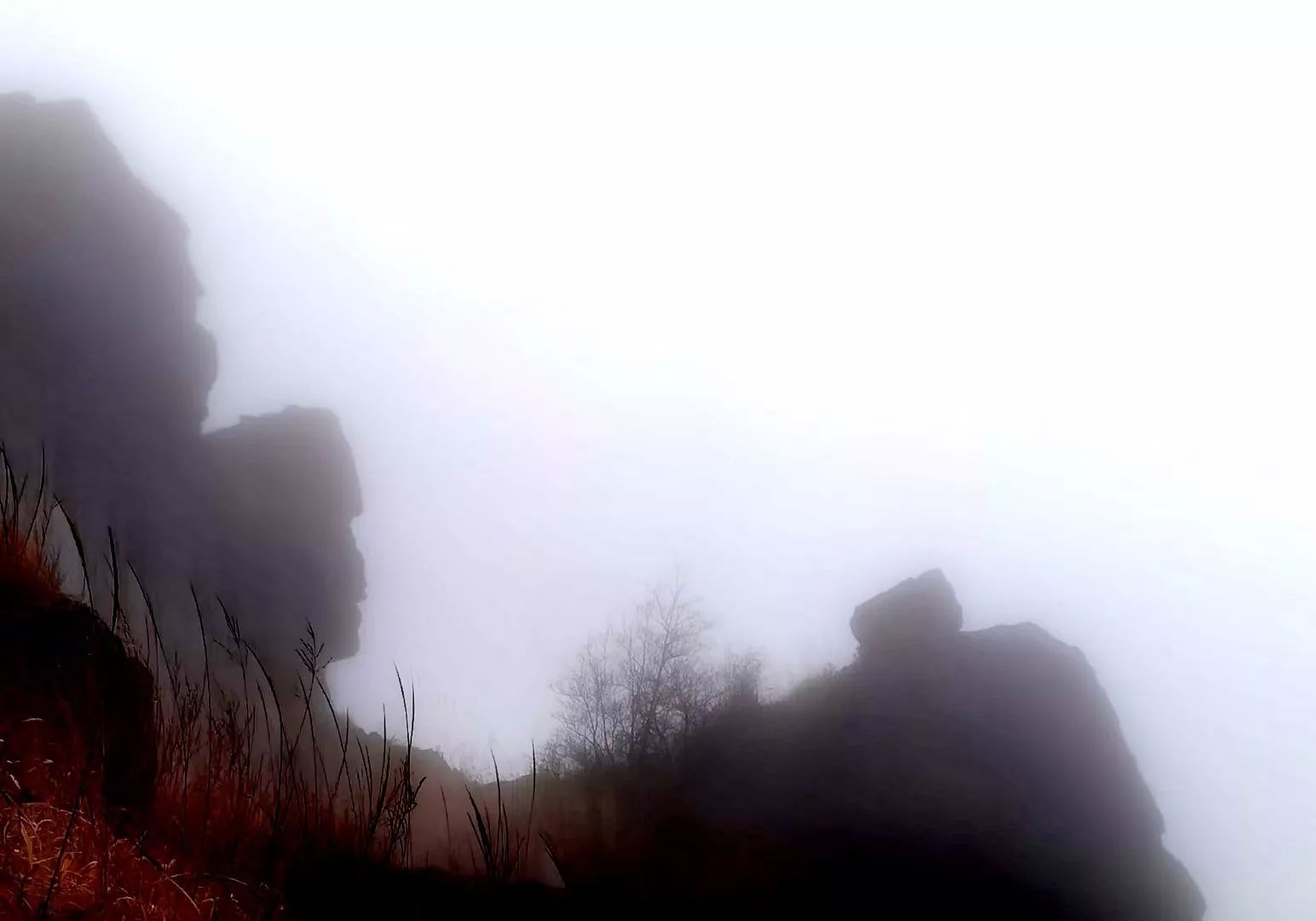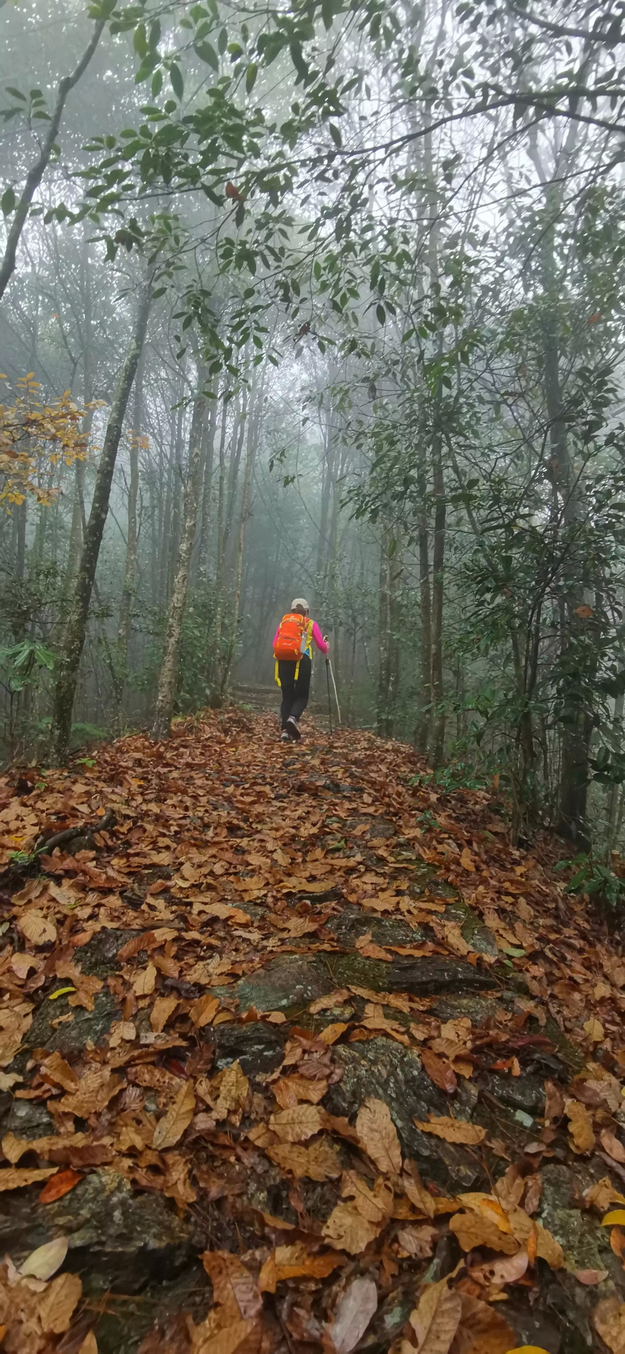 周六,一群驴友早晨7点驱车从县城出发,8点到桂东县四都乡横店村找到一家民宿早餐,8点30分开始登山,周六天气不好,钻入深山一直是阴沉沉的天气,山中浓雾弥漫,饱含水气的浓雾沾湿衣裳,走入大山云里雾里一片迷濛,真是雾里看山山满雾。虽是浓雾弥漫,却有别样的景致,迷迷濛濛,亦真亦幻。给你一种飘逸,濛胧之美。当登上山顶时,原本雾濛迷茫的大山突然云开雾散,大山撩开了她神秘的面纱,或许是山神对我们的垂青,打开她的神秘之门,迎接我们这群远道而来的客人,让我的一饱眼福,一睹大山壮美的姿容和她那靓丽的丰采!大山撩开神秘的面纱,半个多小时后浓雾弥漫重新笼罩大山,大家大山顶狂欢后下撤从另一条更为幽静,充满原始野趣的山路返回,山中浓雾挟雨淅淅沥沥,走在幽静的山野小径,踩在满径的枯叶上沙沙作响,山林中时不时传来几声鸟啼愈显山中的幽静深远。青苔、落叶、丛林、雾霭、涧溪、鸟啼,构成一幅幅美丽的画卷,让人赏心悦目,美不胜收……