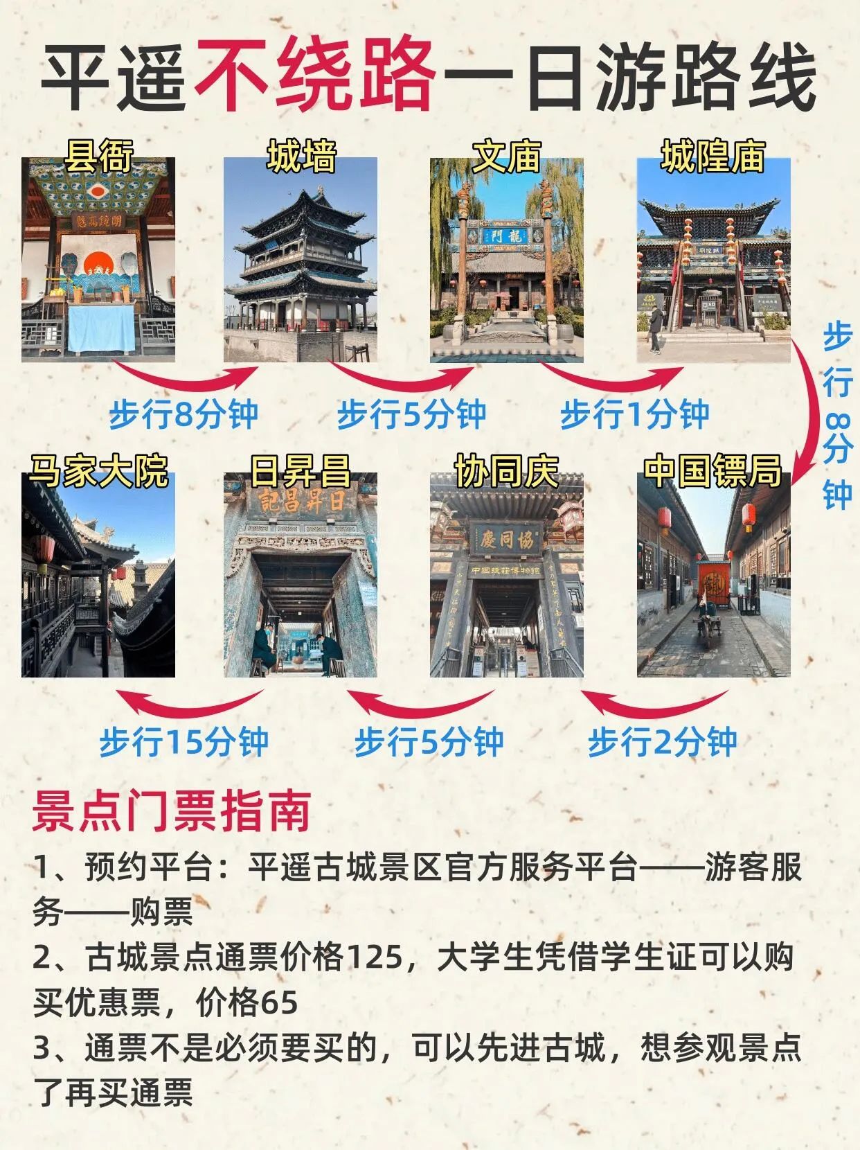 想去平遥古城感受千年晋商文化,又怕行程安排得稀碎?别愁!这份超详细的一日游攻略,从交通到景点,再到必吃美食,全都给你安排得明明白白!要是时间充裕,住一晚慢慢逛,更是惬意,但一天也能玩得超精彩!