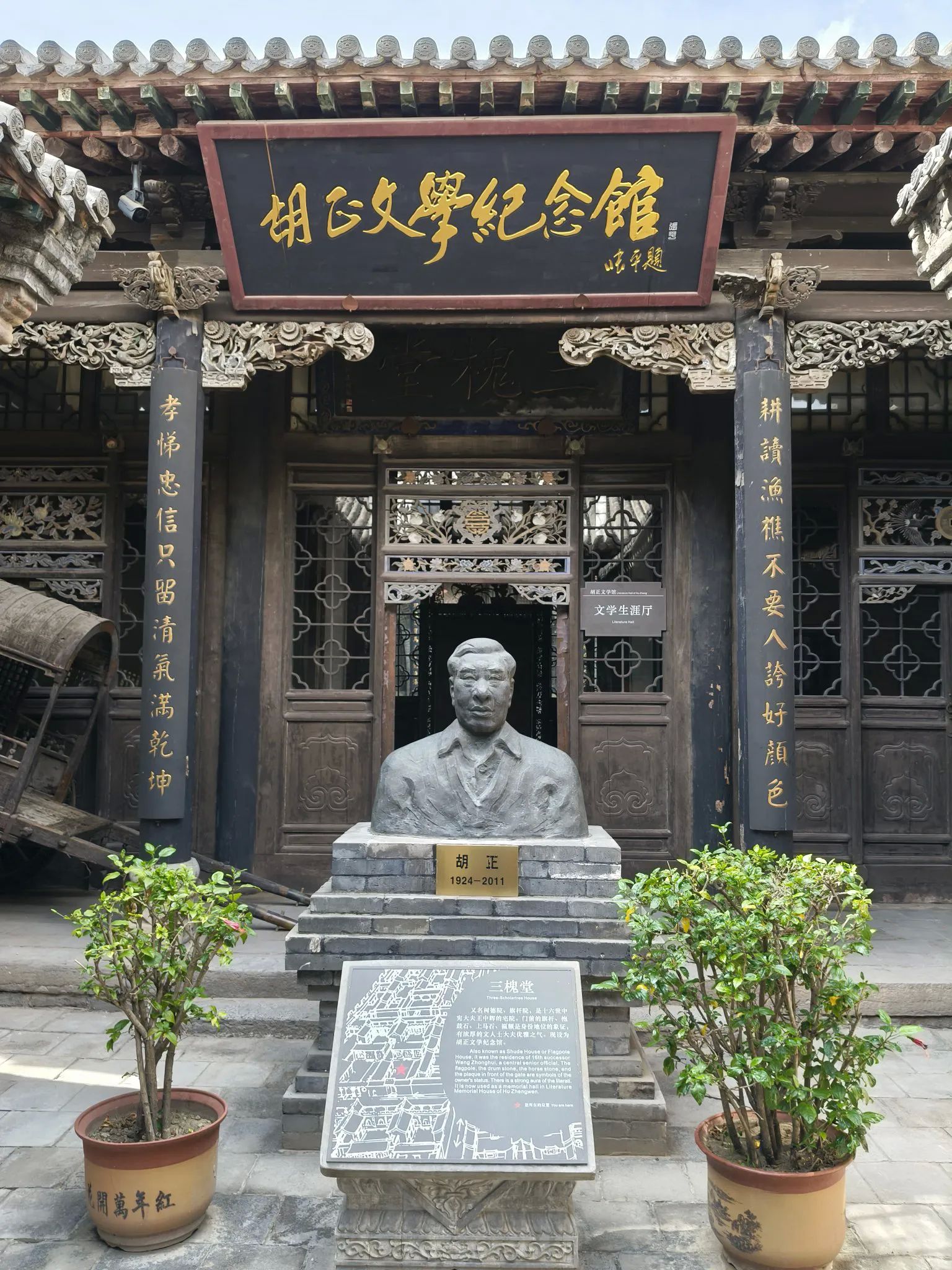 不过,在山西灵谷县静升村王家大院,笔者看到另一种思路,当地在不同的四合院中,举办了不同主题的纪念馆,如图一的胡正文学纪念馆,力群、牛文艺术纪念馆,虽然跟王家历史文化有点不相融,但更好地发挥了建筑的功能,也可为建筑维修多争取到资金来源,也算是物尽其利,古为今用,不知道这是不是王家大院虽名处偏僻之处,门票价收费虽不及乔家大院一半,但建筑却外观齐整的一个原因呢?