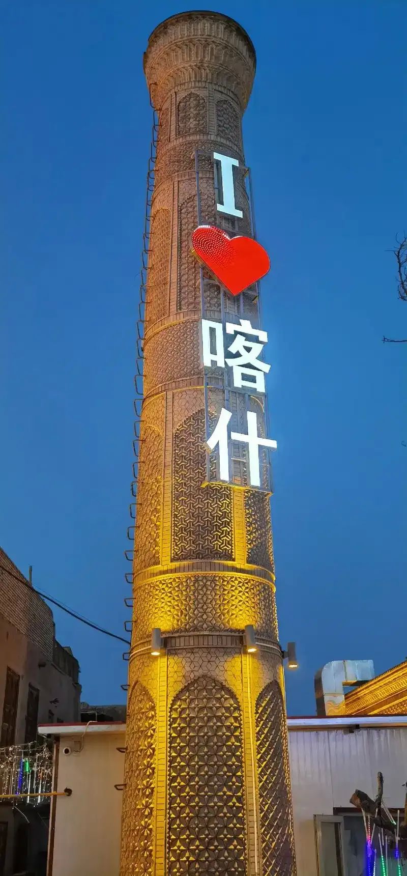 昆仑塔是新疆喀什市高169米的标志性建筑。昆仑塔是集城市观光、休闲度假、餐饮轻食等功能于一体的观光塔,在这里可以一览喀什市全貌。2023年4月6日全面开放。