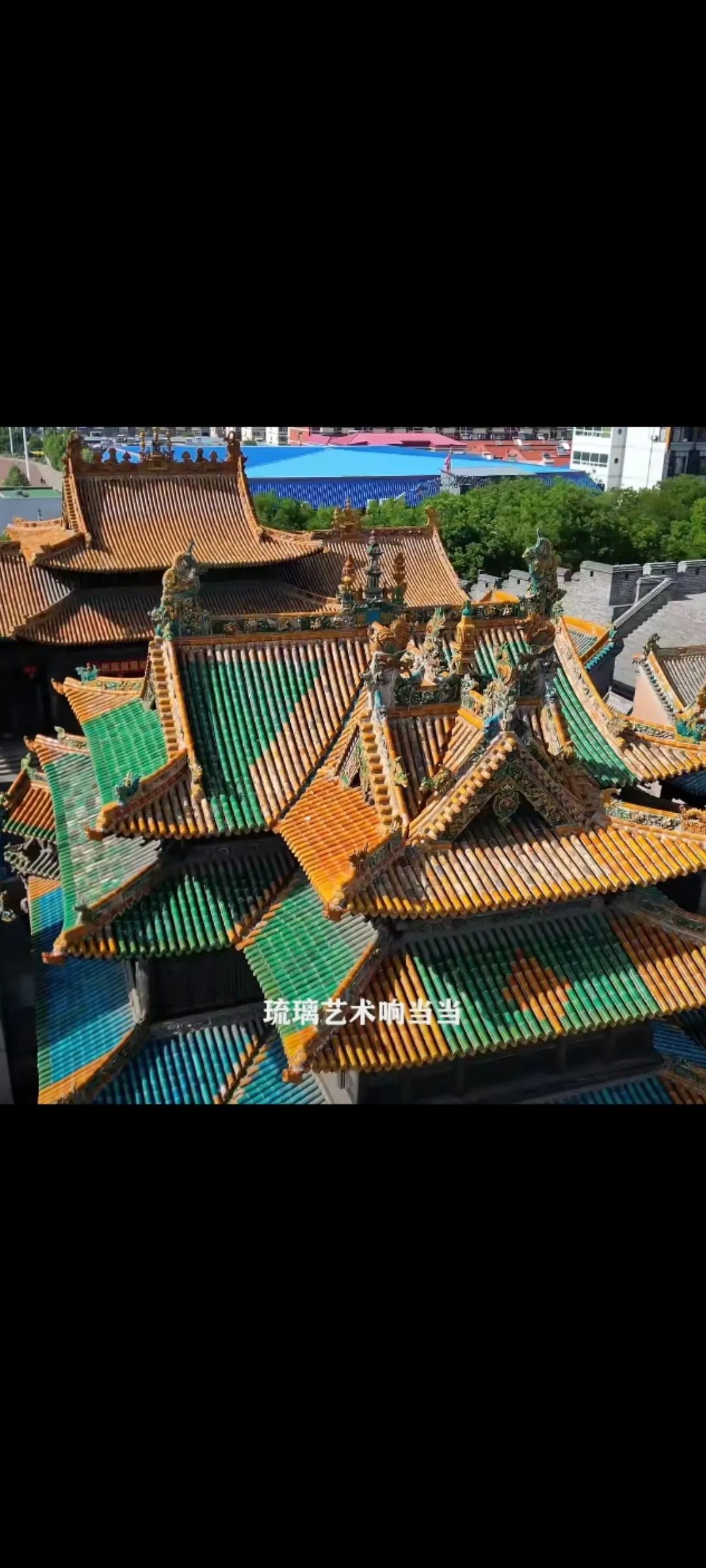 后土庙是道教建筑群,整体建筑均用琉璃构建装饰,现存建筑大多为明洪武时期的遗存,是我国现存后土庙中规模较大、保存最好的王宫帝阙式庙宇。琉璃在阳光的照耀下,色彩鲜艳夺目,造型精美绝伦,让人不禁感叹古代琉璃烧制技艺的高超。这里也是介休被誉为“琉璃之乡”的重要见证,每一处琉璃装饰都承载着介休的历史与文化。