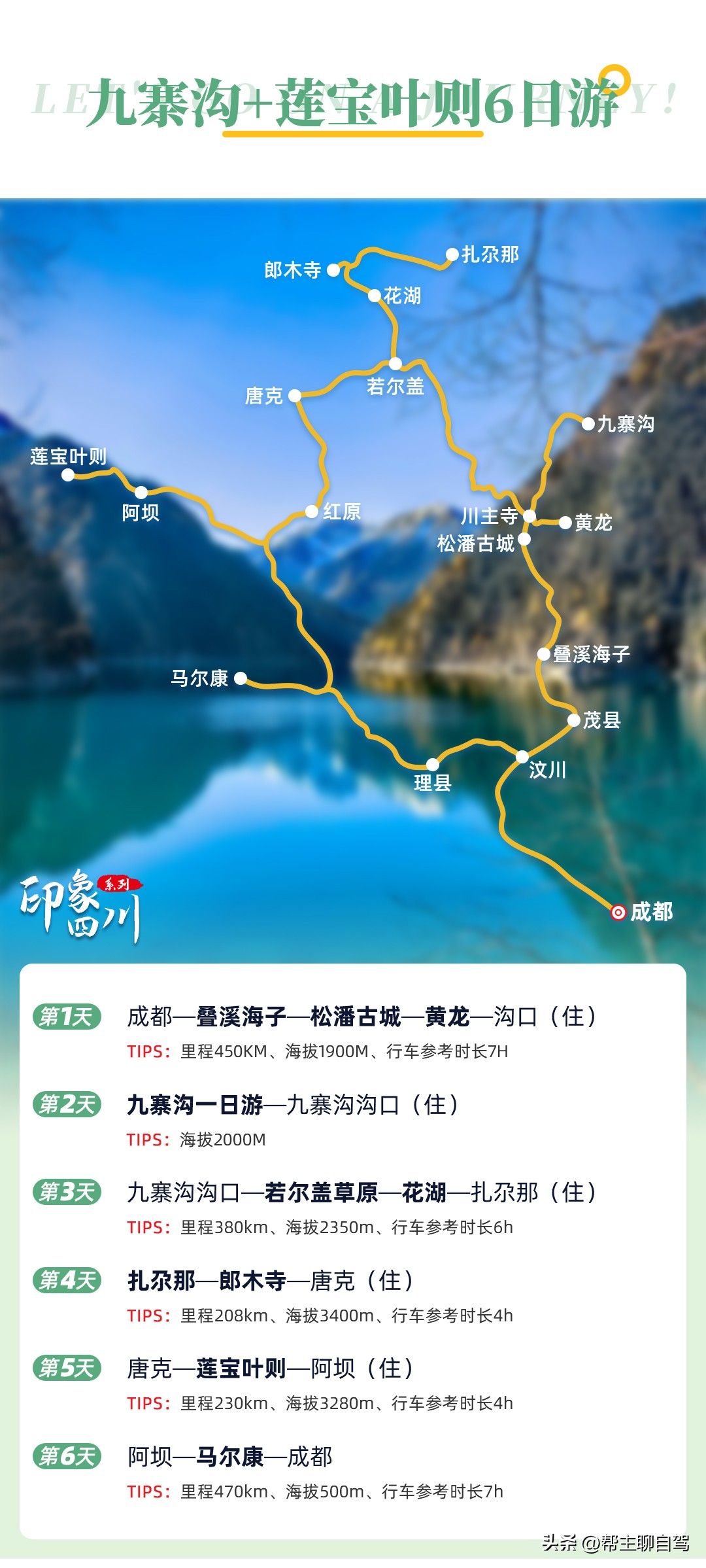 扎尕那+莲宝叶则+九寨沟+黄龙+若尔盖+花湖。