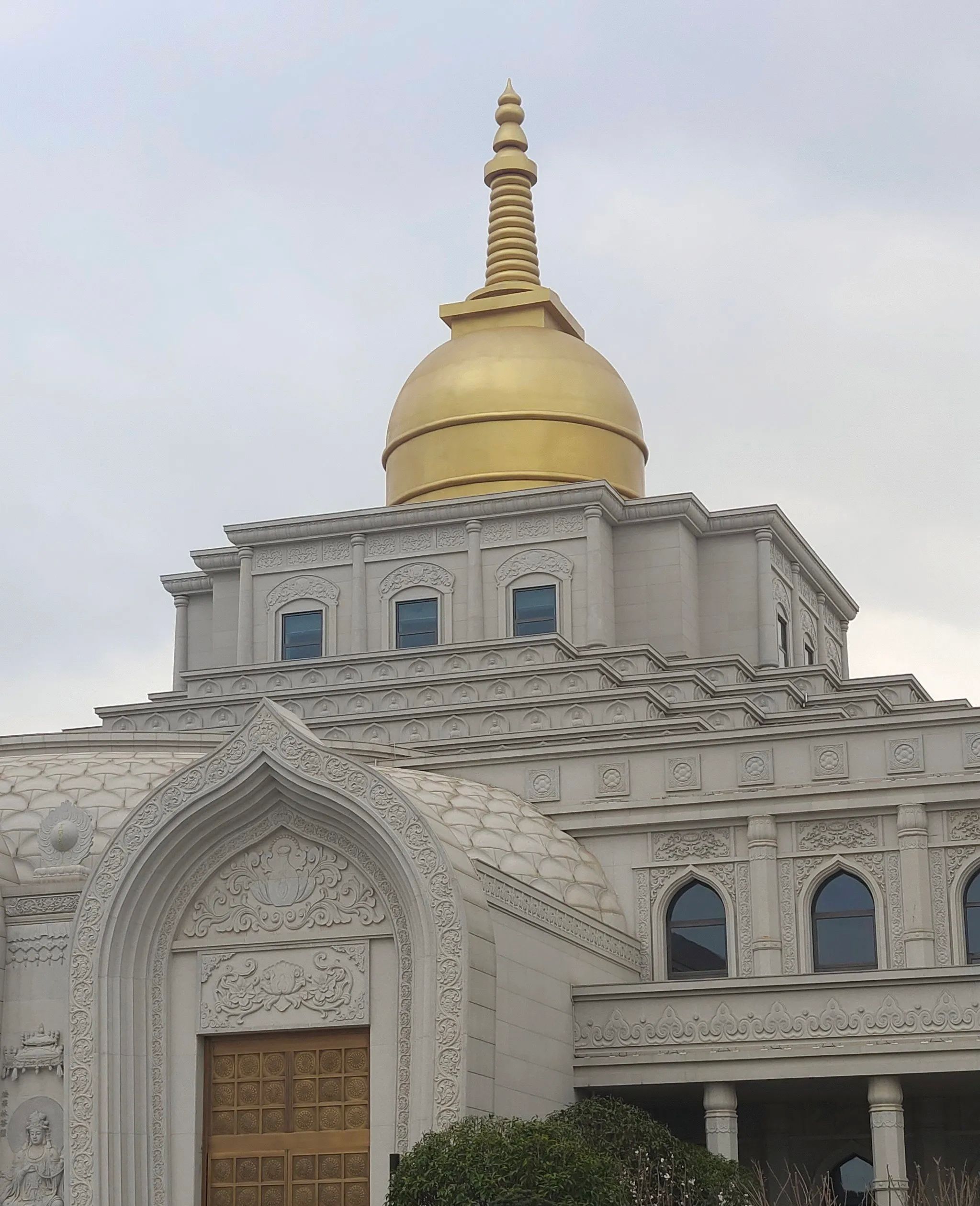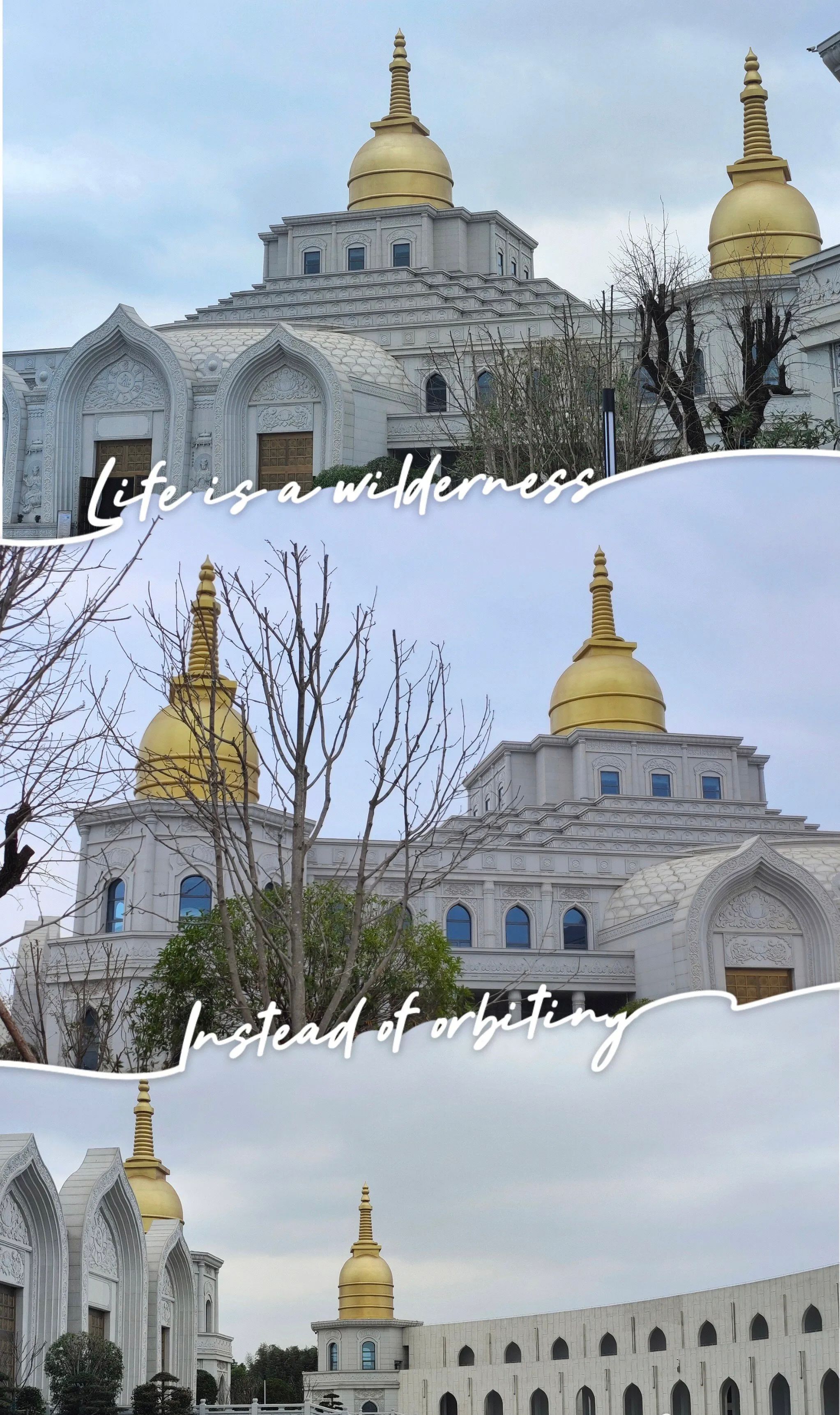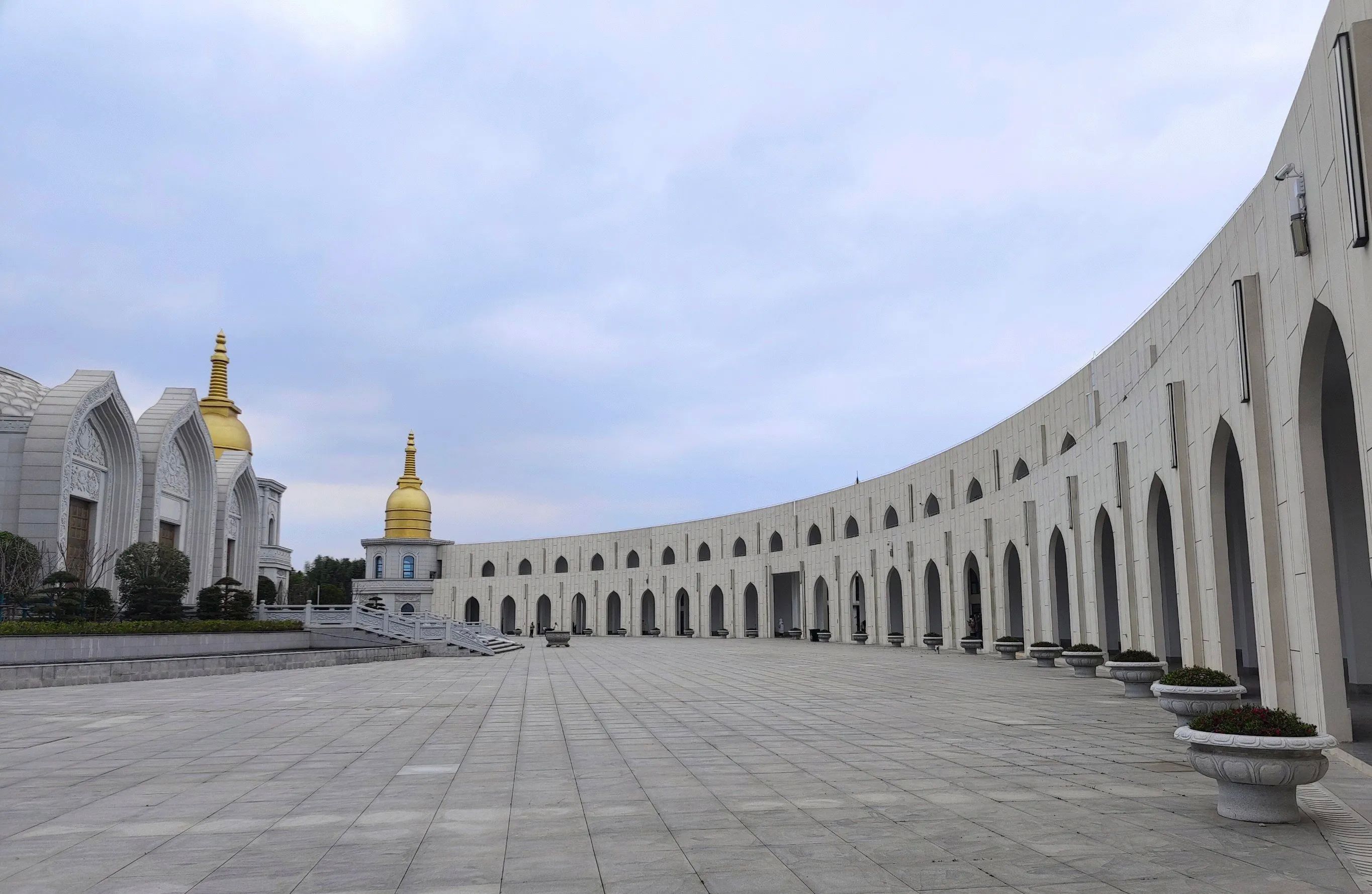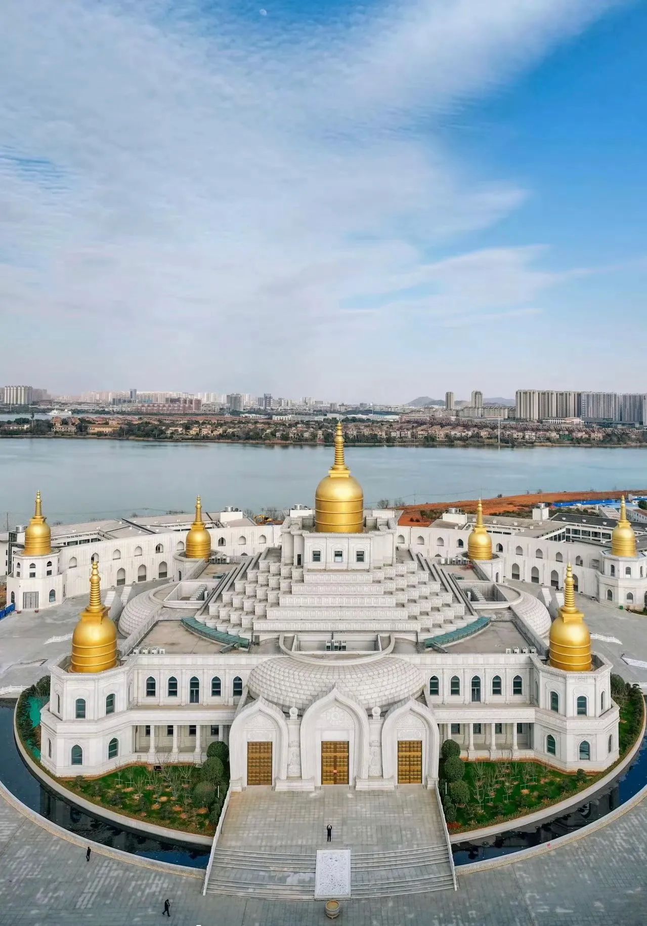 跟那些千篇一律的朱红黄墙传统寺庙不同,莲华寺简直是建筑界的一股清流。它以纯净的白墙搭配闪耀的金色穹顶,再融入超有设计感的西式弧形布局,形成独特的“一轴两线三域”格局。沿着中轴线一路逛,十方普照塔、普光明殿等建筑依次映入眼帘,金色穹顶在汤逊湖湖水的映照下,熠熠生辉,仿佛一秒穿越到异域神秘圣殿。不管是哪个角度,随手按下快门,都是能刷爆朋友圈的大片
