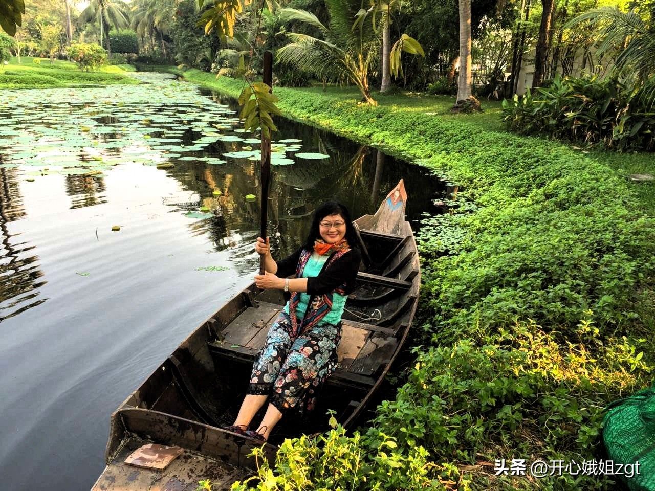 走到索菲特酒店的荷花湖,我想跳到船上,结果船倾斜了,我直接掉进湖里,幸好我游到湖边,保安和船工把我拉上岸边,我浑身湿漉漉的大笑,我的背包是防水的,护照等物件没有湿。两位青年稳住船,我坐船上。他们为我拍照留念。