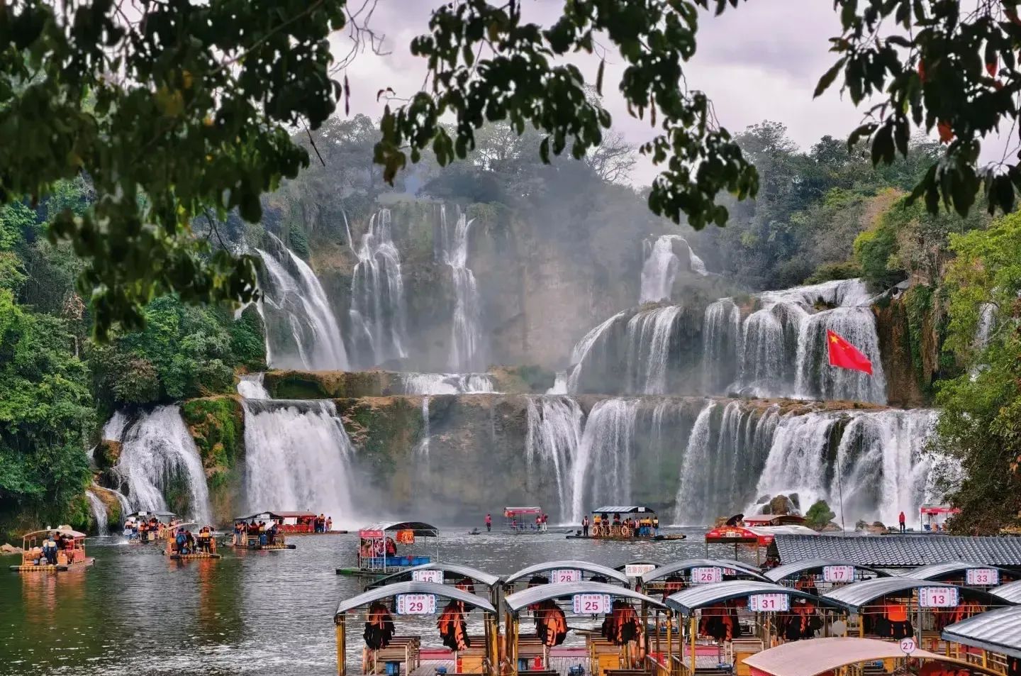 亮点:亚洲第一跨国瀑布,与越南板约瀑布相连,可乘竹筏近距离感受瀑布磅礴气势,登高观景台俯瞰中越边境全景。