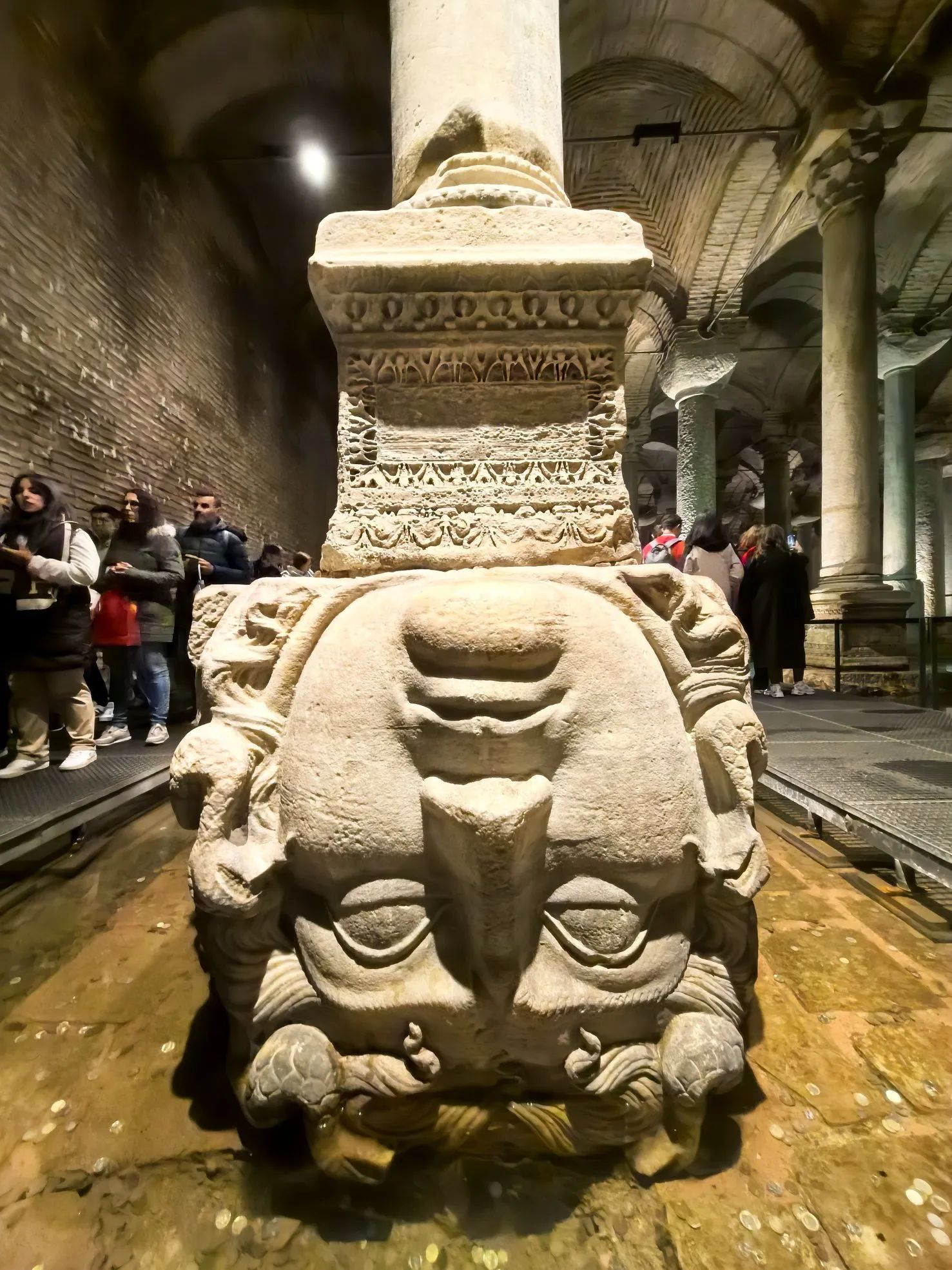 水宫中最著名的是柱子下面的两座美杜莎的头像,一个侧卧、一个倒立的美杜莎头像底座。希腊神话中可怕的美杜莎是拥有把看她眼睛的人变成石头的能力,因此美杜莎的头像被用来保护重要的建筑。