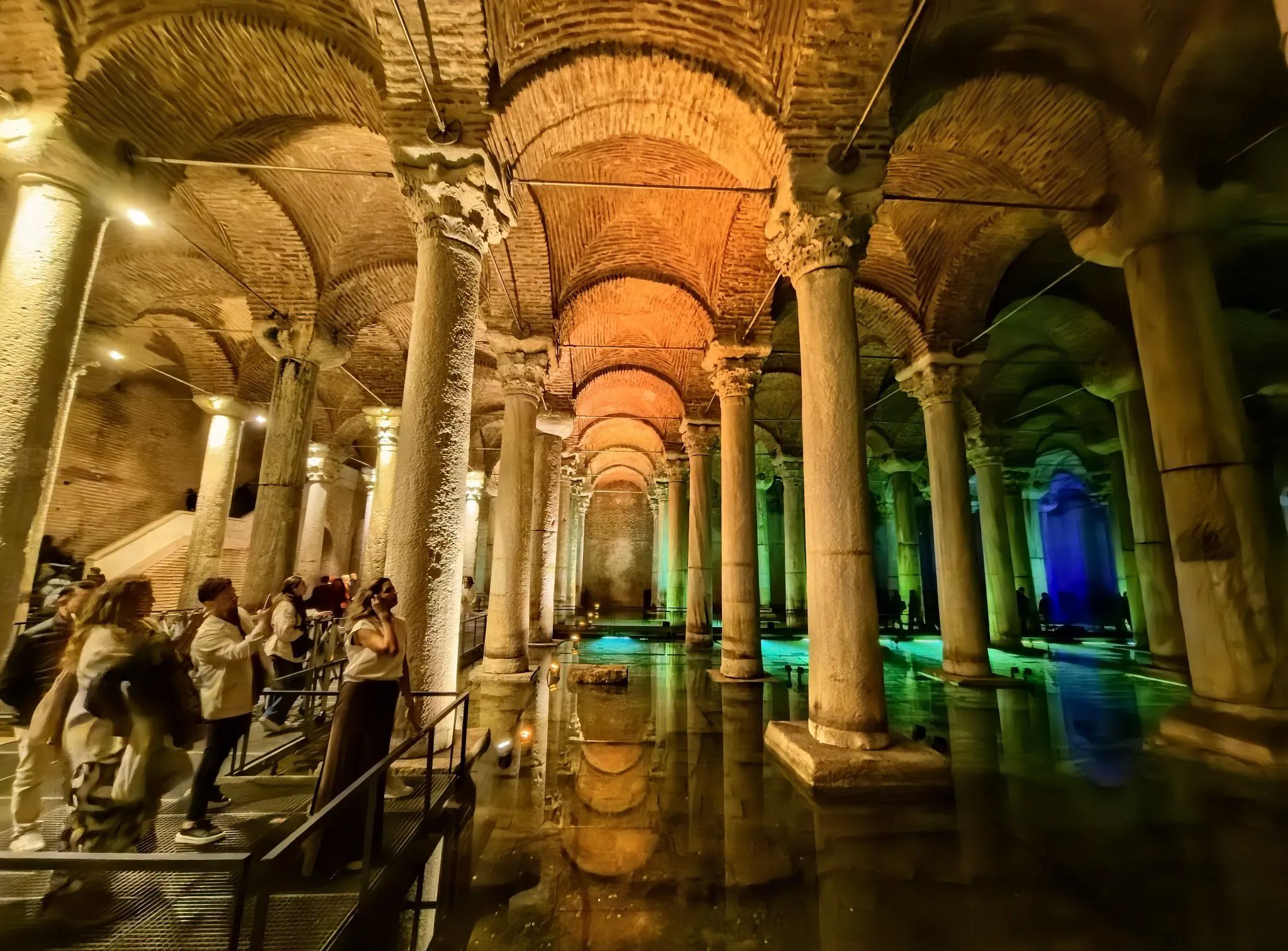 一处地下建筑,现存最大的地下宫殿,336根巨大石柱。是为了给大皇宫和周边的建筑蓄水,蓄水量高达8万立方米。在拜占庭皇室从大皇宫迁走之后就关闭了。1545年才得以重见天日,1985年进行清理和重修,1987年对外开放。