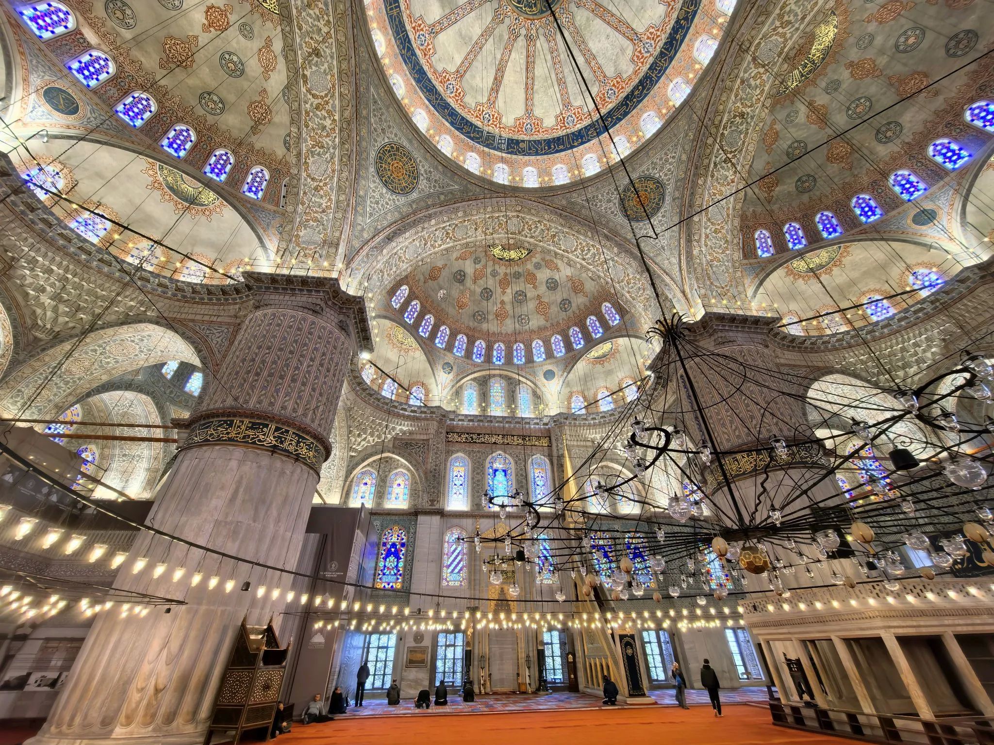 震撼穹顶与蓝瓷砖:阳光透过260扇彩色玻璃窗洒进来,20643片蓝白瓷砖瞬间变身"蓝色海洋",抬头看穹顶光影绝美。