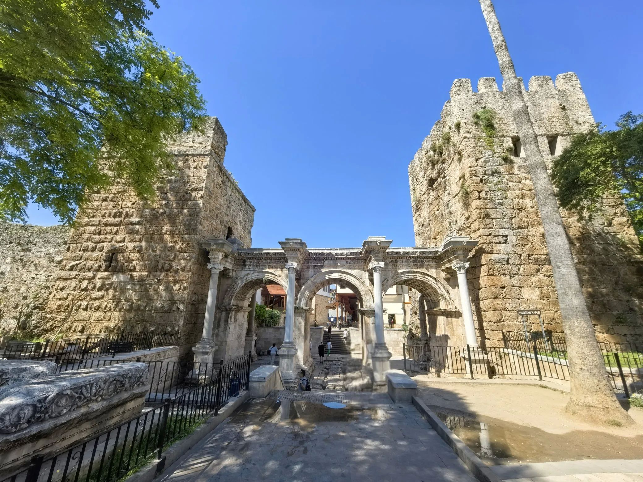 哈德良之门Hadriyanus Kapisi:公元130年时,为前来的罗马皇帝哈德良建造的。安塔利亚地标,走在被历史的车轮压过的深深凹槽的石板路上,恍如隔世。