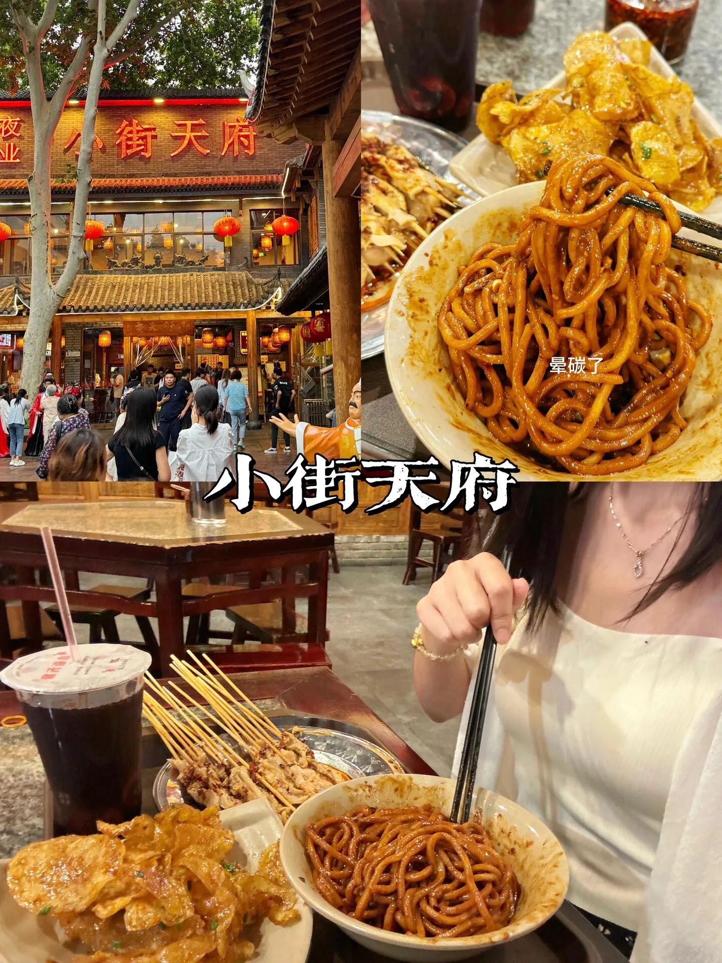 小街天府:一个人花50块就能吃到撑!这里的取餐方式超特别,先去点单取票,每种食物都有对应的取餐窗口,到窗口就能拿到美食。