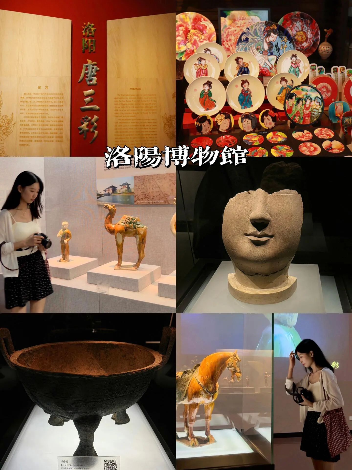 洛阳博物馆:记得提前预约,馆内上下两层,藏品丰富多样。要是想拍美照,可以做好妆造再来。我更钟情于博物馆的外景,所以没把妆造安排在这天,不过在这里拍转场视频超合适!