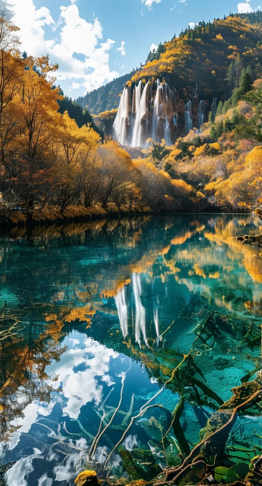 乘坐景区内的环保车,选择“原始森林”或“树正沟”作为第一站,欣赏美丽的湖泊和瀑布。