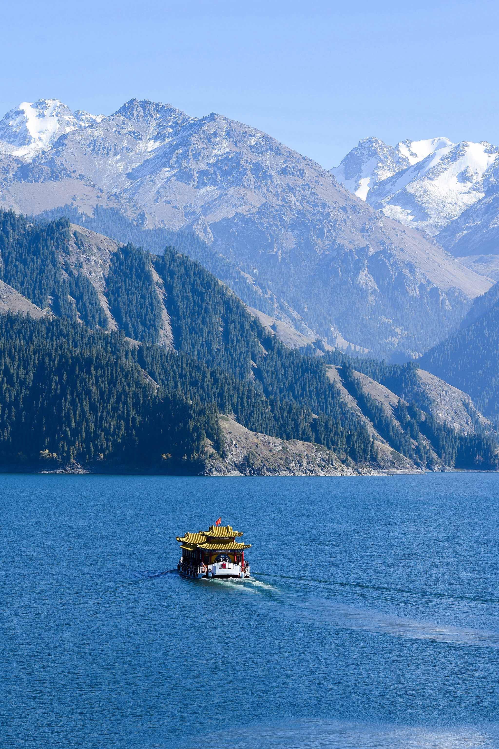 赛里木湖:在博尔塔拉蒙古自治州博乐市,是新疆海拔最高、面积最大的高山湖泊,有“大西洋最后一滴眼泪”的美誉。湖水湛蓝清澈,沿湖散步可欣赏到远处的雪山和湖边的草原花海。