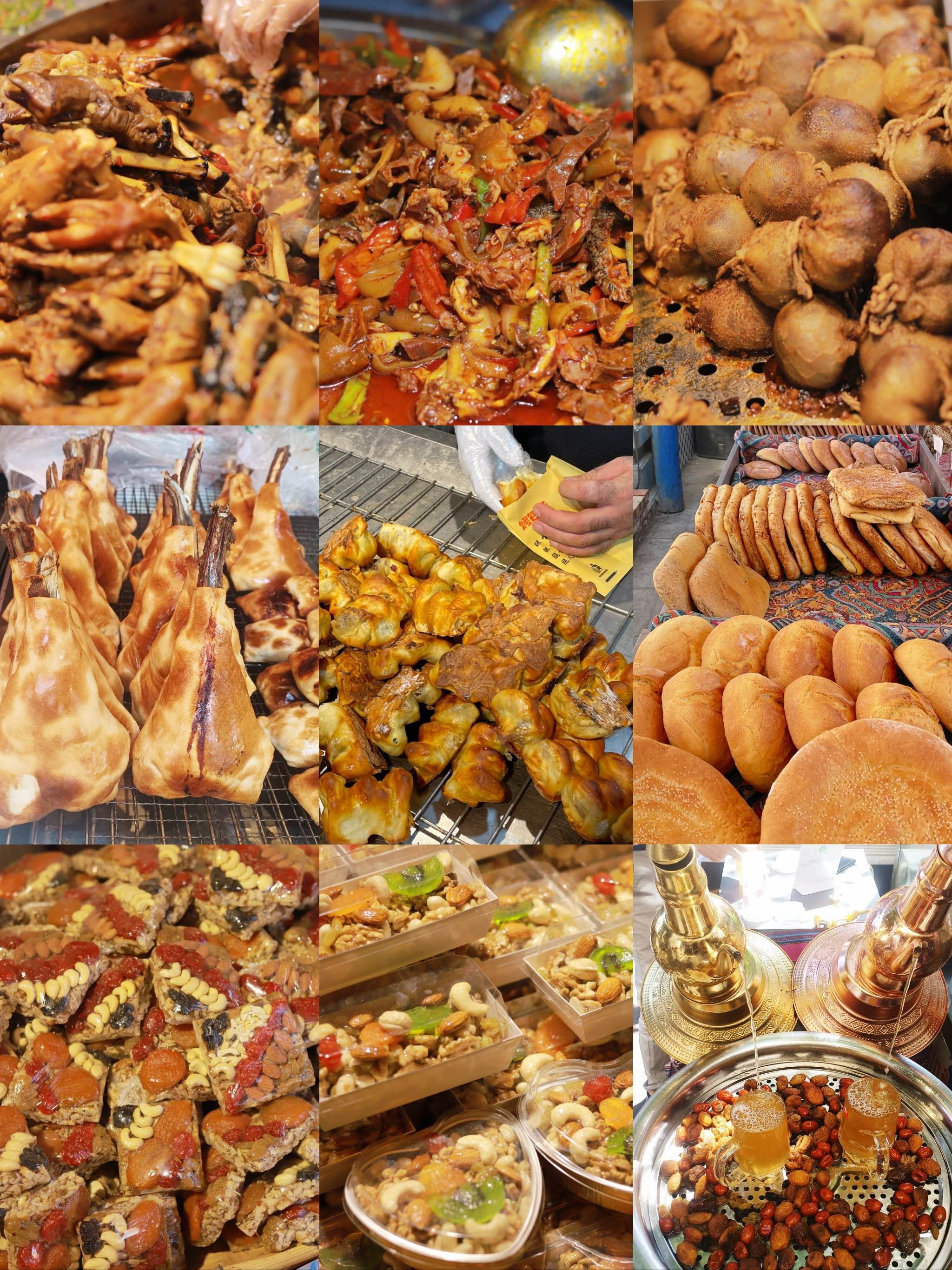 馕:种类多样,如油馕、辣皮子馕、肉馕等,是新疆的特色主食,用馕坑烤制,味道香且保存时间长,可搭配奶茶等食用。