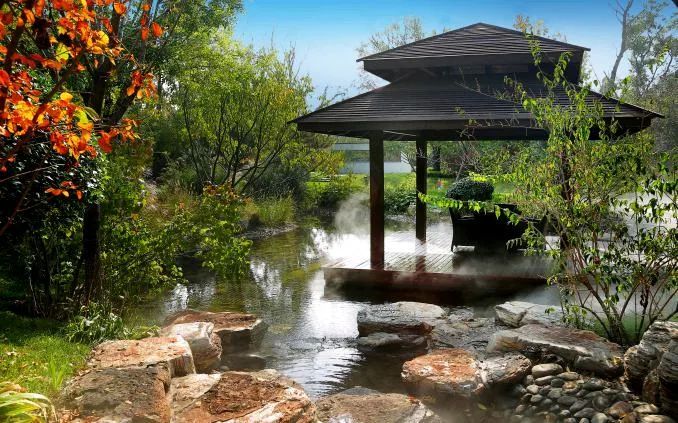 1. 固安温泉建国酒店:这家酒店处于华北地热田牛驼凸起带的核心位置,提供私汤温泉以及室内外温泉设施,适合家庭休闲度假。