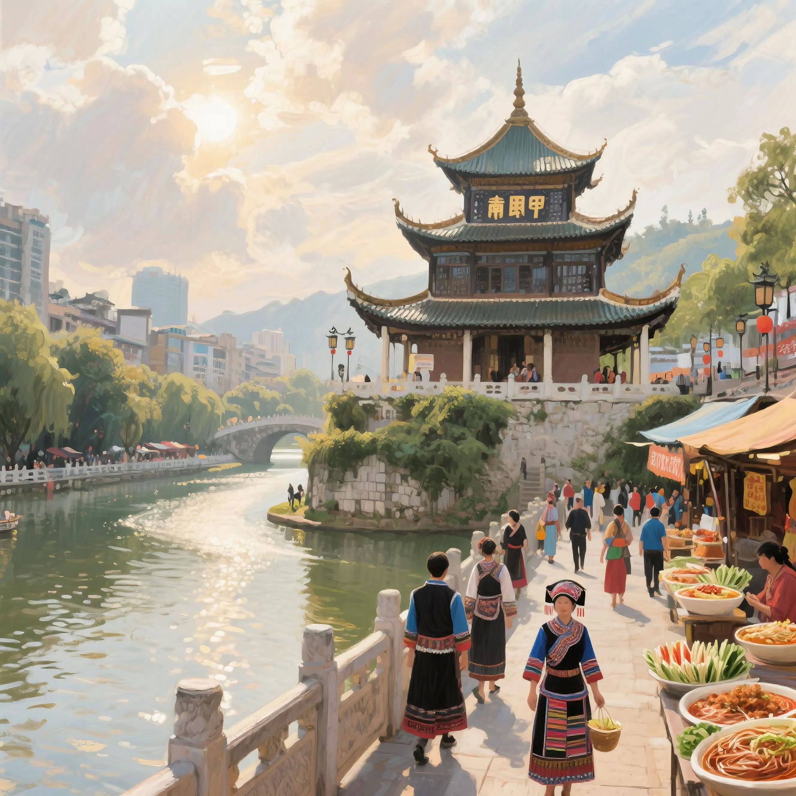 贵阳的文化底蕴深厚,是多元文化的交融地。青岩古镇,这座有着600多年历史的古镇,是屯堡文化的活化石。古色古香的街巷、明清风格的建筑,诉说着岁月的故事。在这里,你还能感受到少数民族文化的独特魅力,苗族的四月八、布依族的三月三,节日里人们身着盛装,载歌载舞,热闹非凡。此外,甲秀楼承载着贵阳的历史文脉,楼中长联描绘着贵阳的山川地理与人文历史,令人赞叹。