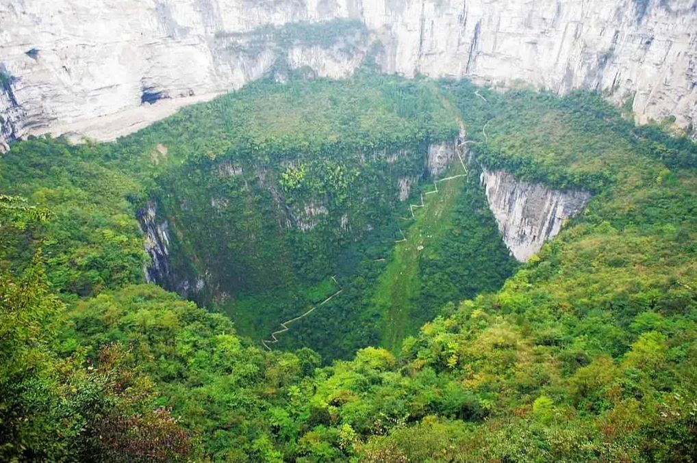 - 小寨天坑:位于奉节县兴隆镇小寨村,是世界上深度和容积最大的岩溶漏斗。天坑口四面绝壁,如斧劈刀削,宏伟壮观,坑底有无数幽深莫测的洞穴和一条汹涌澎湃的暗河。