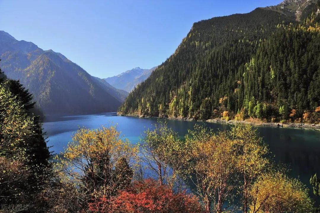 2. 九寨沟(四川):“九寨归来不看水”,108个高山湖泊如蓝宝石般镶嵌在雪山森林间,秋季层林尽染时,景色如天然油画。