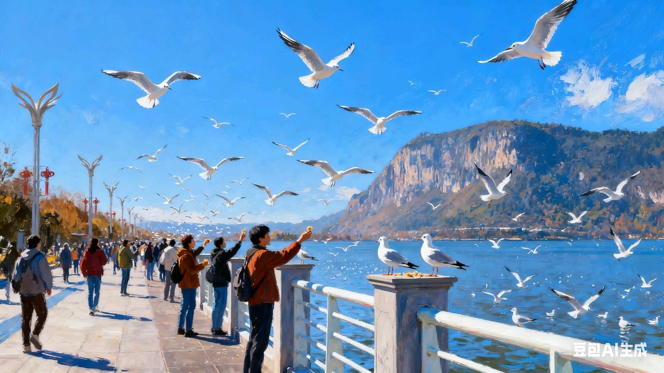 - 上午:抵达昆明后,先前往【滇池海埂大坝】,冬季(11月-次年3月)可投喂红嘴鸥,夏季能赏滇池碧波与西山睡美人山景,游玩1.5-2小时。