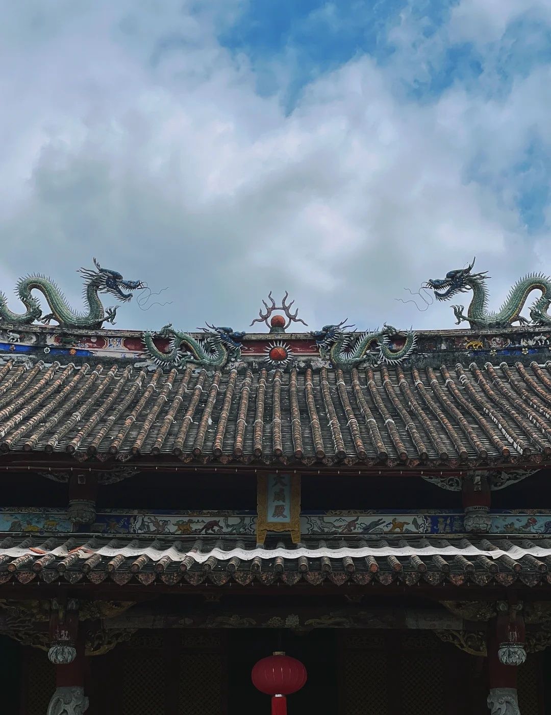 • 风格独特:大成殿采用重檐歇山顶土木结构,屋顶双梁,凤在上、龙在下,在古今建筑中较为少见。