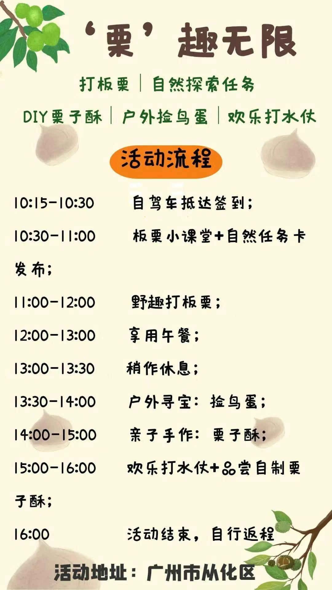 这个秋天,别让娃宅在家!带他们去从化打板栗,在敲打声中感受丰收的喜悦,在溪水间释放童真,在美食制作中学会珍惜——这才是童年该有的模样!#从化亲子好去处# #广州遛娃打卡地# #广州遛娃好去处#