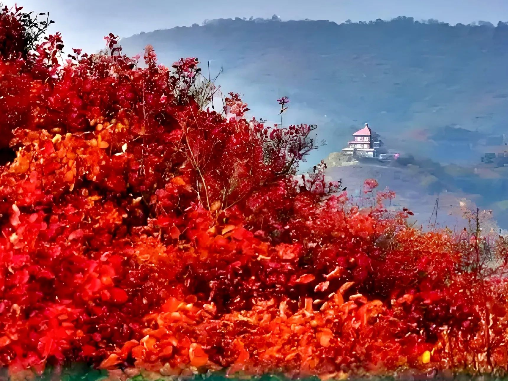八达岭长城的红叶则多了几分雄浑气魄。9月下旬至10月底,3000余亩红叶林沿城墙绵延,黄栌与元宝枫交织出斑斓的色带。乘缆车凌空俯瞰,蜿蜒的长城与火红山峦相映成趣,恍若巨龙穿梭于彩色画卷。