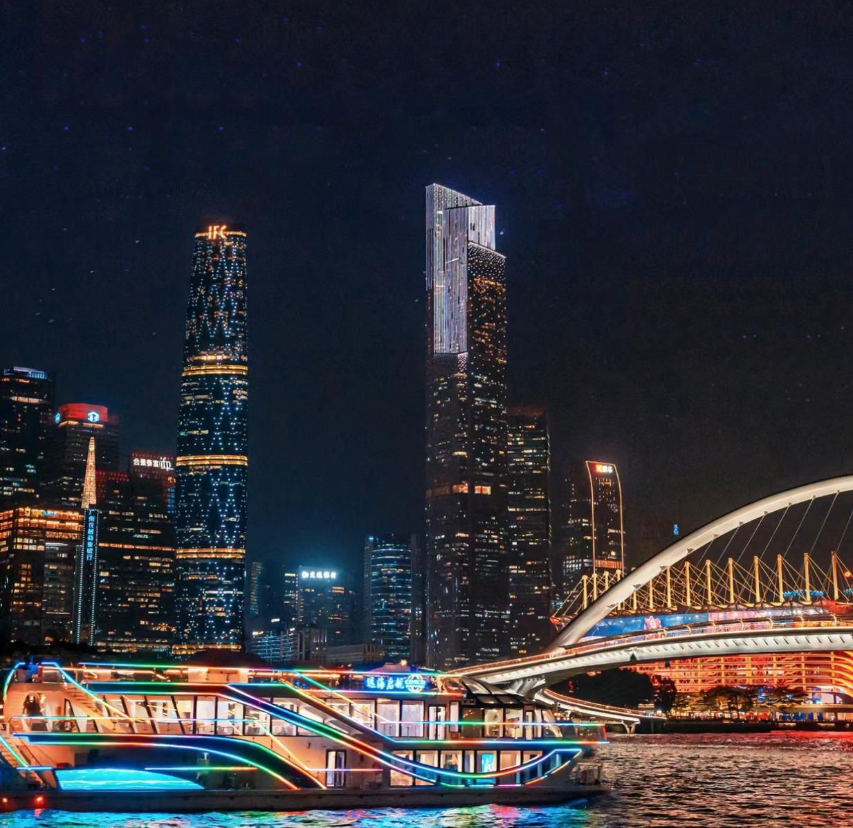 晚上:开启珠江夜游,推荐在天字码头登船,欣赏珠江两岸璀璨灯光夜景,感受广州的浪漫夜色。