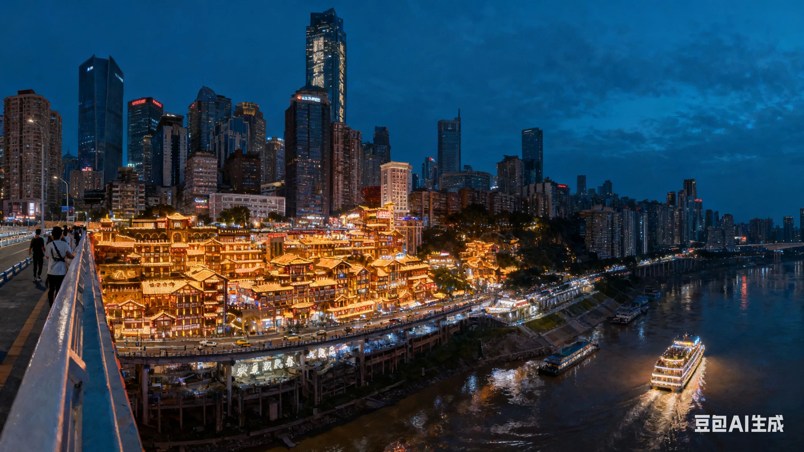 - 打卡重点:白天看吊脚楼建筑结构,19:30后亮灯(灯光持续到23:00),夜景如“现实版千与千寻”,最佳拍摄点在千厮门大桥桥面(从洪崖洞步行10分钟可达)。