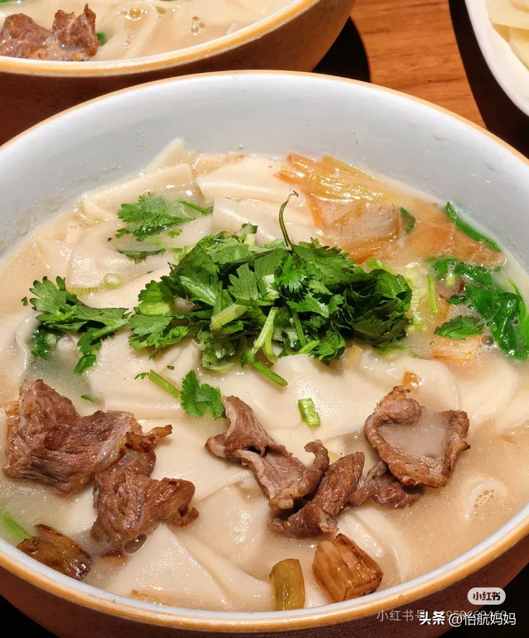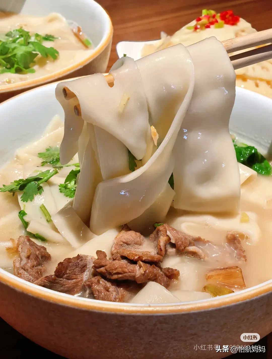 牛肉烩面:南阳人的灵魂美食!牛骨熬制8小时的奶白浓汤,配上筋道的宽面和大块软烂牛肉,再浇上一勺秘制辣油,香到跺脚,一口就沦陷!